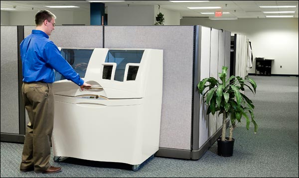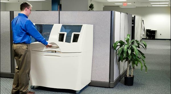 Petit retour en arrière avec l’une des première imprimante 3D : la ZPrinter 350. Sortie en 2009, elle ne permettait d’imprimer qu’en blanc, à une faible résolution (300x450dpi) et la taille maximum d’un objet ne pouvait dépasser 20x25x20cm . Très volumineuse et très lourde (180kg), la ZPrinter 350 était compatible avec les formats de fichiers 3DS, STL, VRML, PLY et ZPR envoyés depuis un ordinateur Windows. Son prix de lancement était de 26 000 dollars.