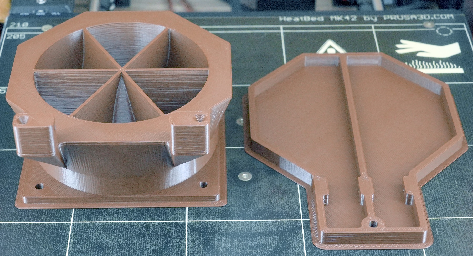 La trappe et le redresseurs sont imprimés en ABS, en deux parties. Il n’y a pas besoin de supports :