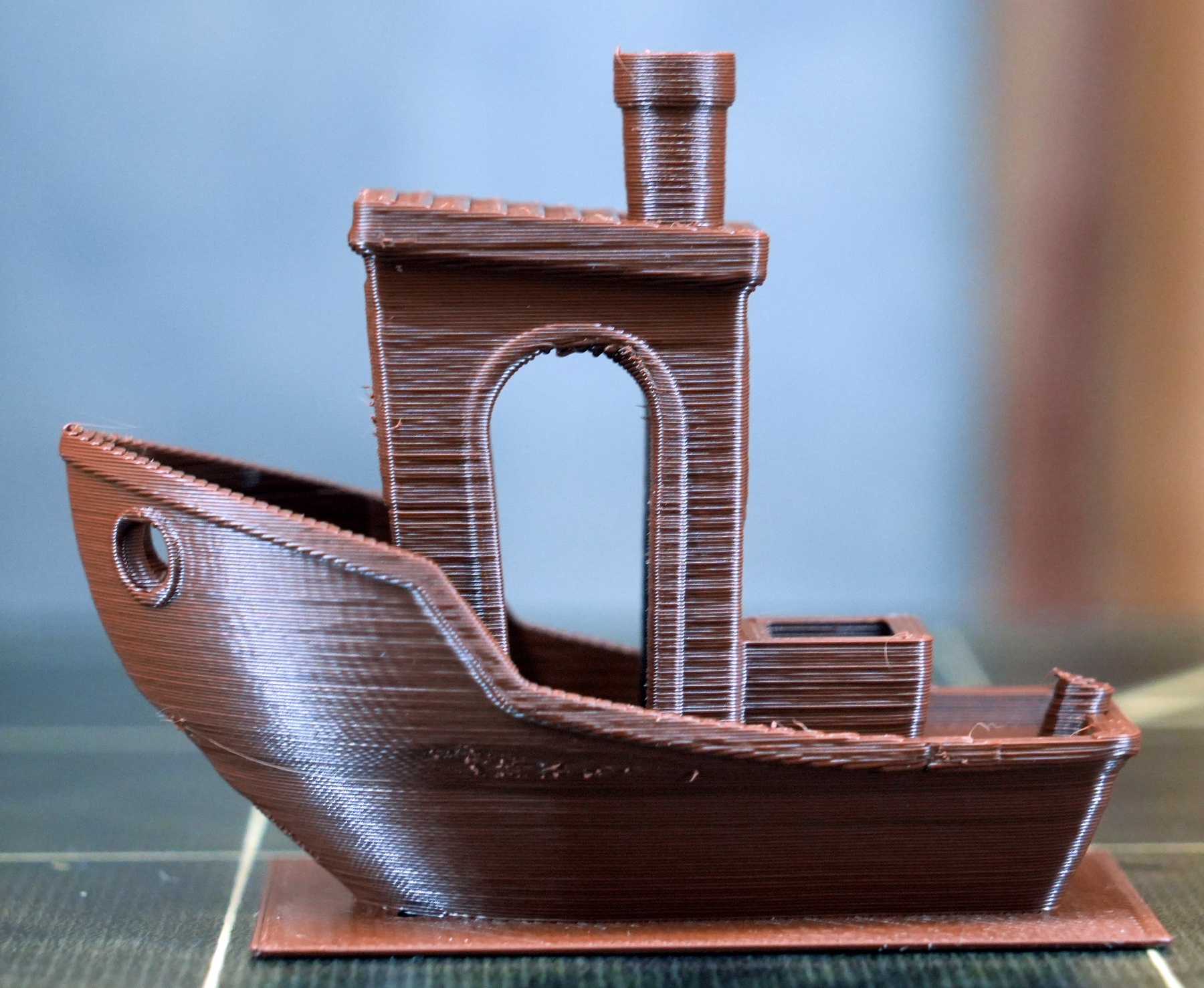 Cela fait des des années que le Benchy ne pose plus de difficultés aux imprimantes 3D. Le miens est correct ; la grosse différence avec les imprimantes actuelles c’est la vitesse. Certaines imprimantes arrivent à fabriquer un Benchy en PLA en 16 minutes… mais en utilisant le Benchy prétranché par le fabriquant (il y a peut être un peu de triche ou d’optimisation). Ma MK2s+ a mis 1h15 pour sortir ce Benchy en ABS, avec les paramètres par défaut du slicer et une enceinte à 60°C.
