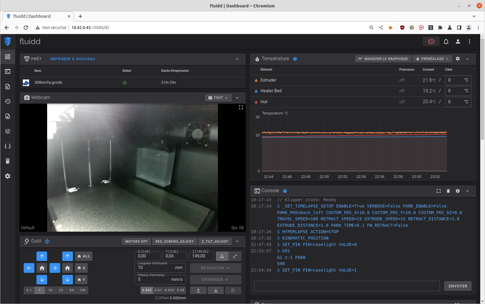 Avec sa caméra intégrée et grâce à Klipper et Fluidd, il est possible de gérer la Qidi Q1 Pro à distance depuis le slicer maison ou un simple navigateur web, ainsi que d’enregistrer des vidéos timelapse des modèles 3D imprimés.