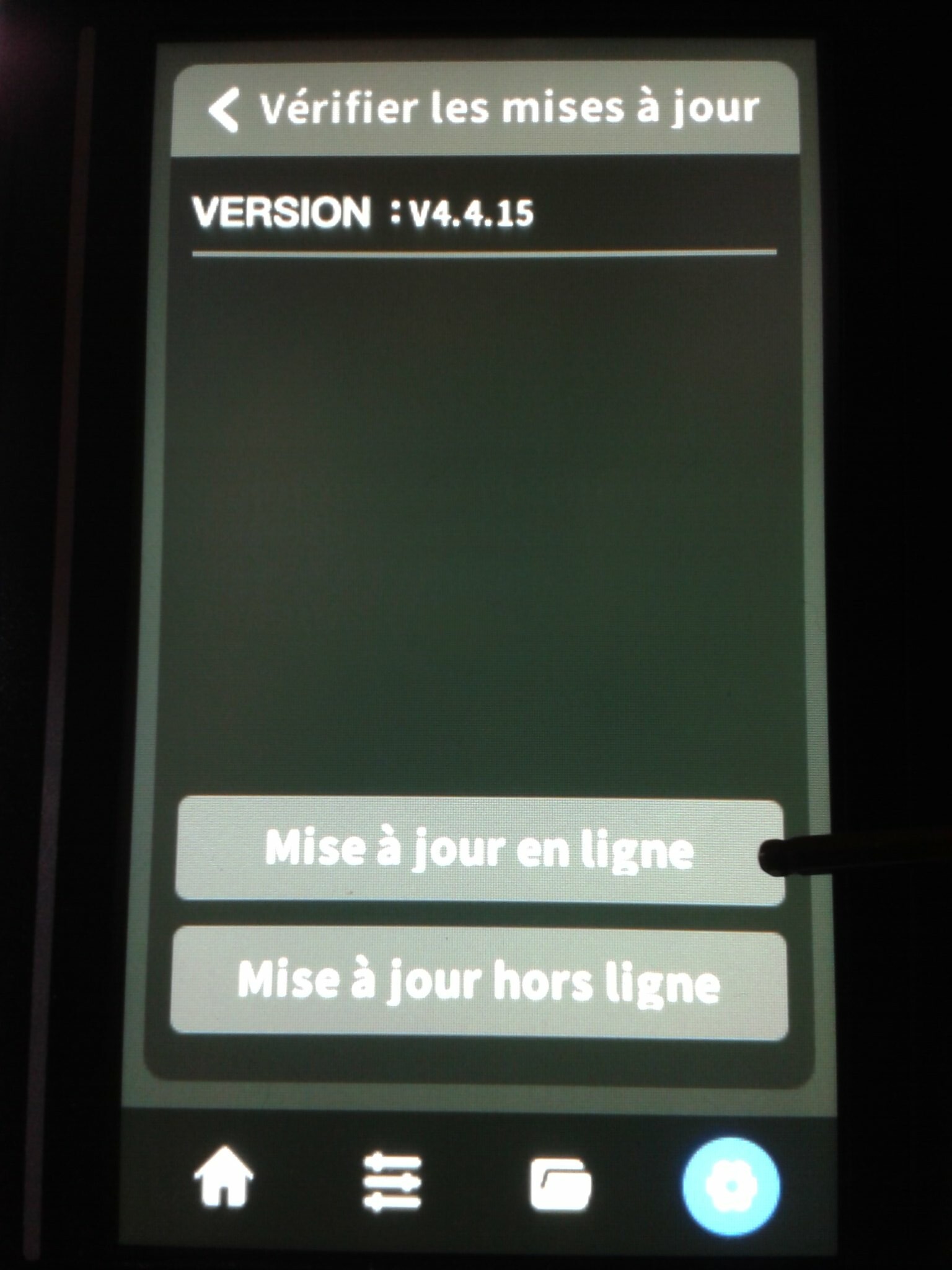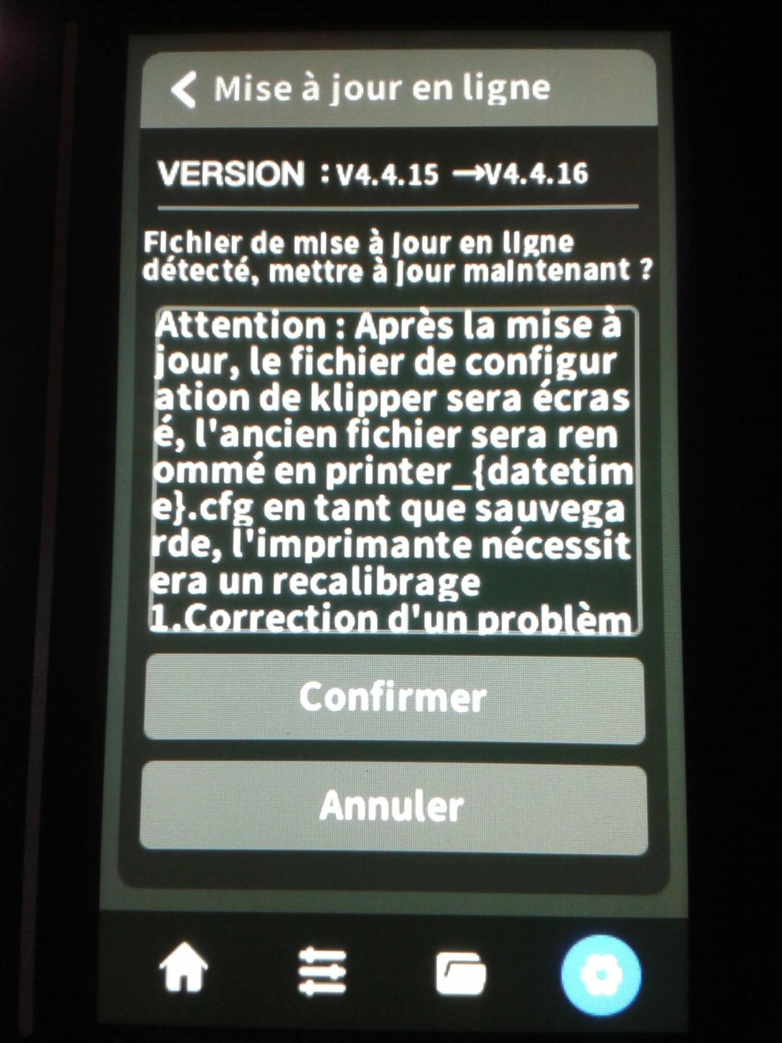 Le firmware v4.4.15 pour l’exemplaire de test de cette Qidi Q1 Pro (mise à jour de la v4.4.13 à la v4.4.15 via la clé USB effectuée sans rencontrer de difficultés).