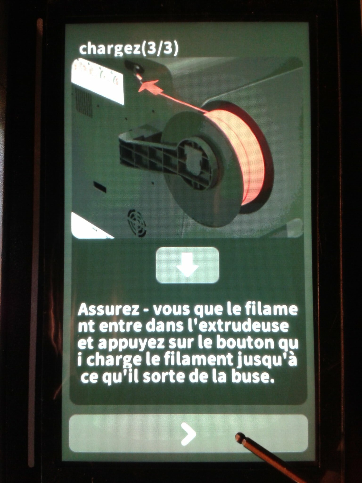 Il n’y a donc, normalement, qu’à connecter le cordon secteur, allumer la machine, patienter environ 25 secondes le temps de l’écran de chargement au démarrage et suivre les indications sur l’écran tactile de contrôle.