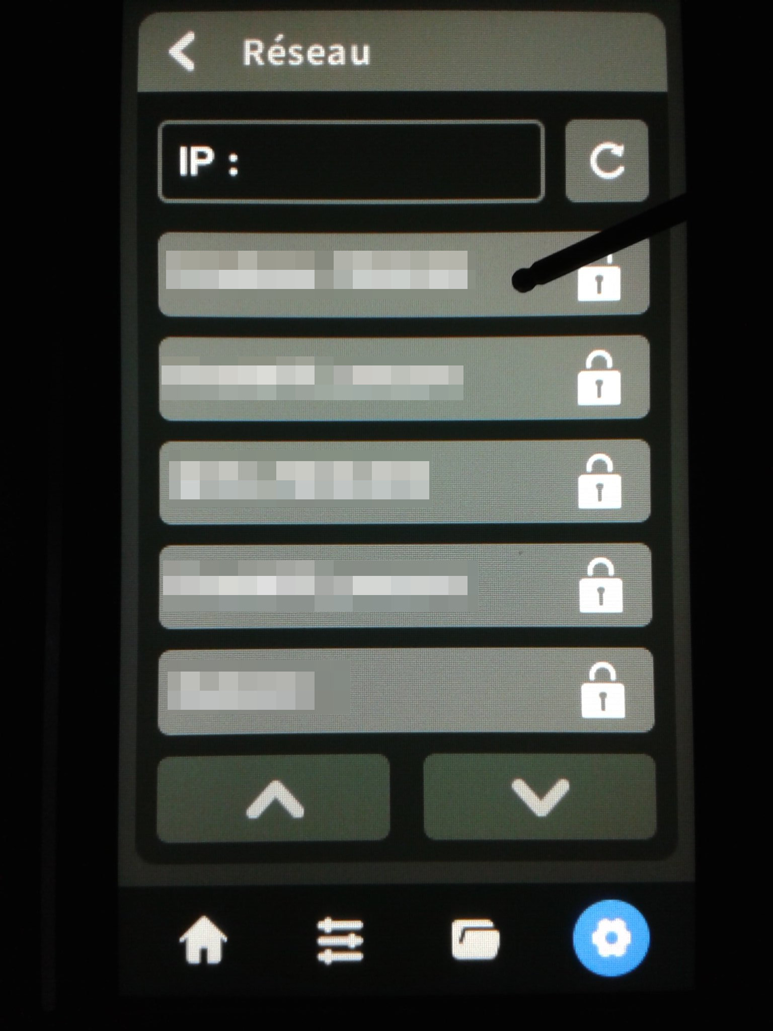 Puis après avoir repositionné le plateau flexible sans son sachet de protection sur la base aimantée, effectuer un “Nivellement automatique du plateau” et un “Input Shaping” avant de configurer la connexion à votre réseau Wi-Fi (2.4 GHz).