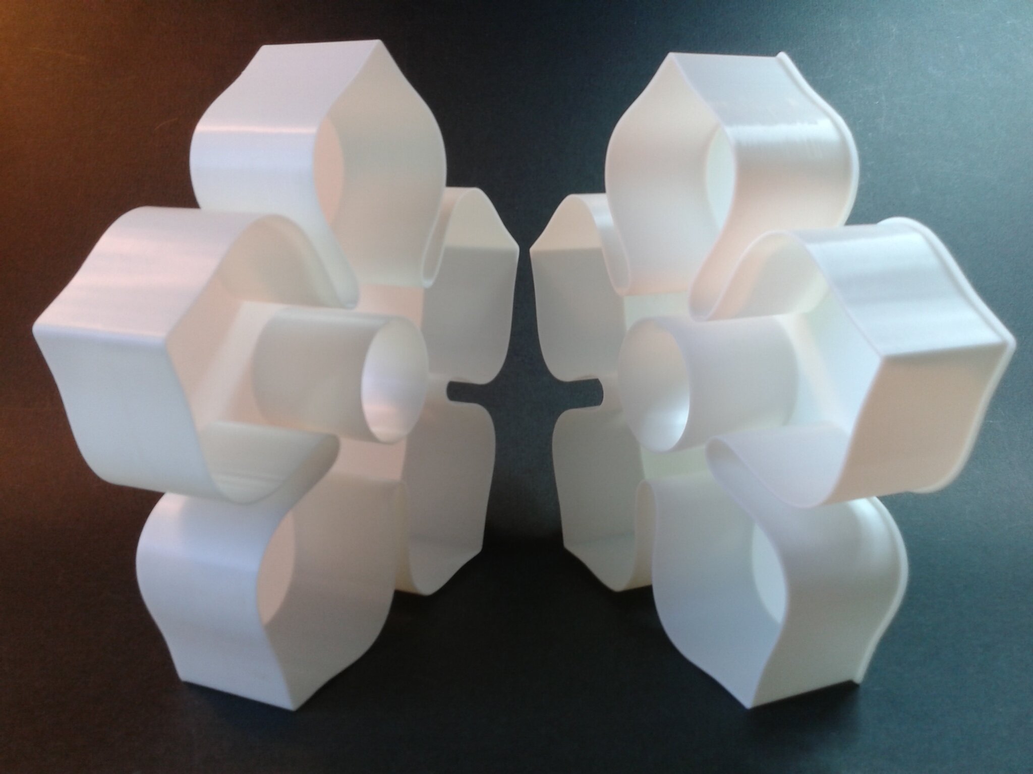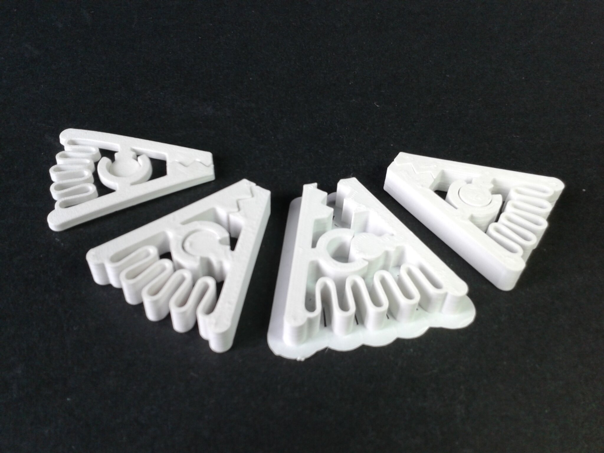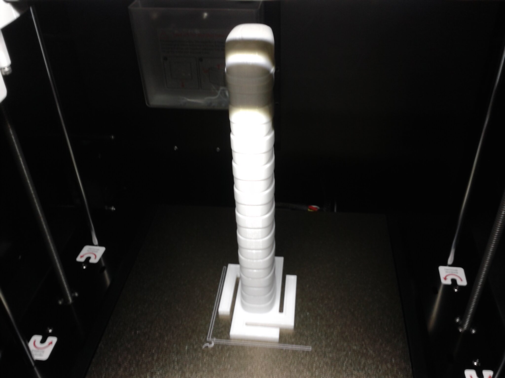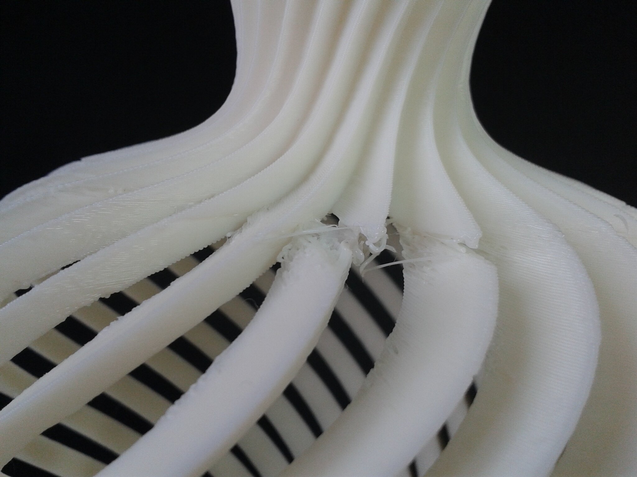 Certains défauts d’impression sont visibles mais il s’agit d’un modèle relativement difficile à imprimer à haute vitesse car le moindre curling ou les moindres vibrations vont faire osciller les pales qui, lors de l’impression, sont libres et montent sur une grande hauteur avant de se rejoindre et peuvent donc avoir une grande amplitude d’oscillation.