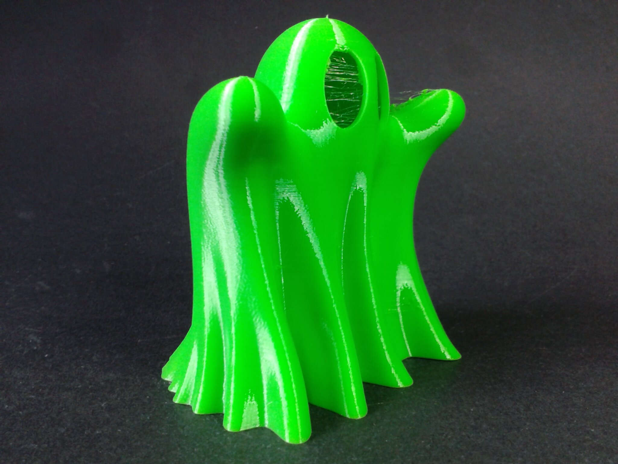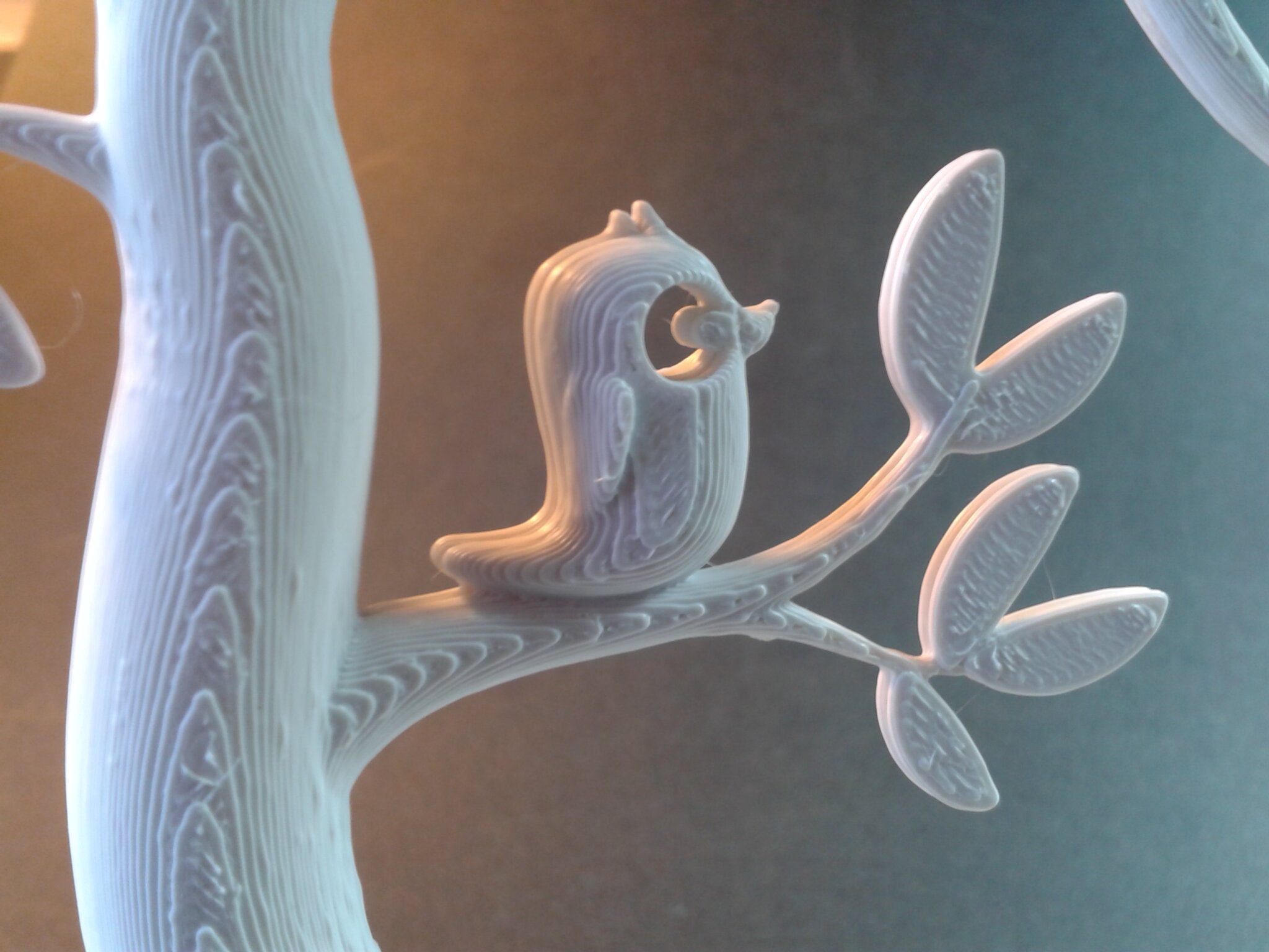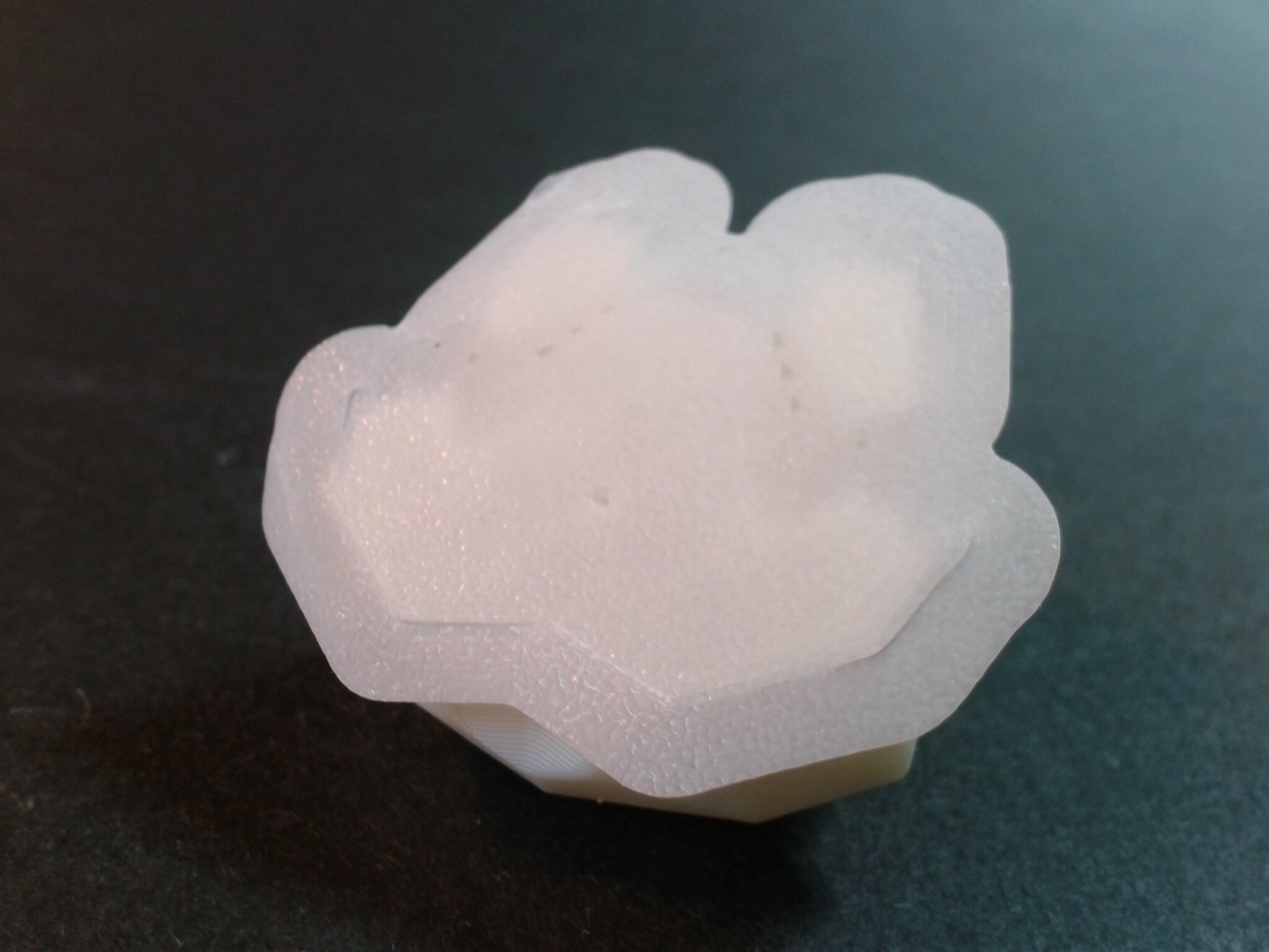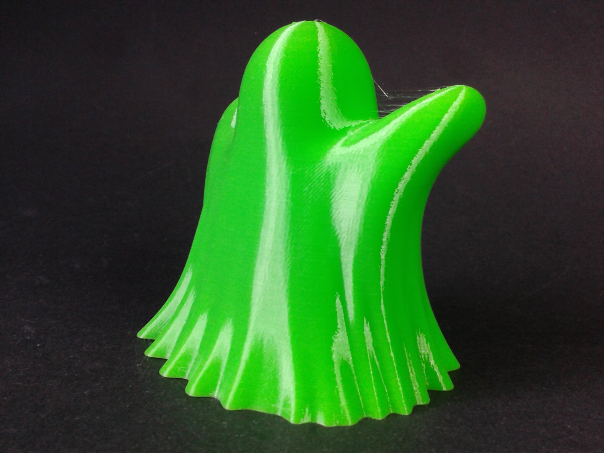 Certains défauts d’impression sont visibles mais il s’agit d’un modèle relativement difficile à imprimer à haute vitesse car le moindre curling ou les moindres vibrations vont faire osciller les pales qui, lors de l’impression, sont libres et montent sur une grande hauteur avant de se rejoindre et peuvent donc avoir une grande amplitude d’oscillation.