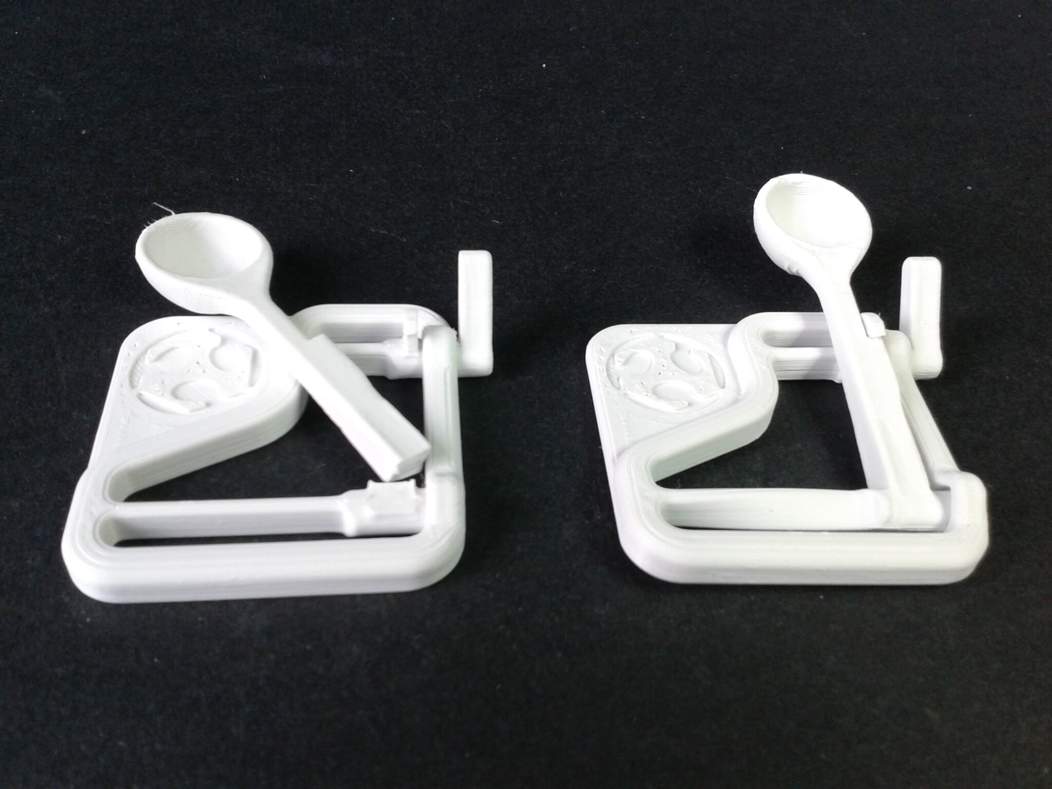 J’ai imprimé les deux versions, fichiers .stl. Les deux catapultes de mon premier tranchage “0.20 mm Fine” se sont de suite ou très vite cassées.