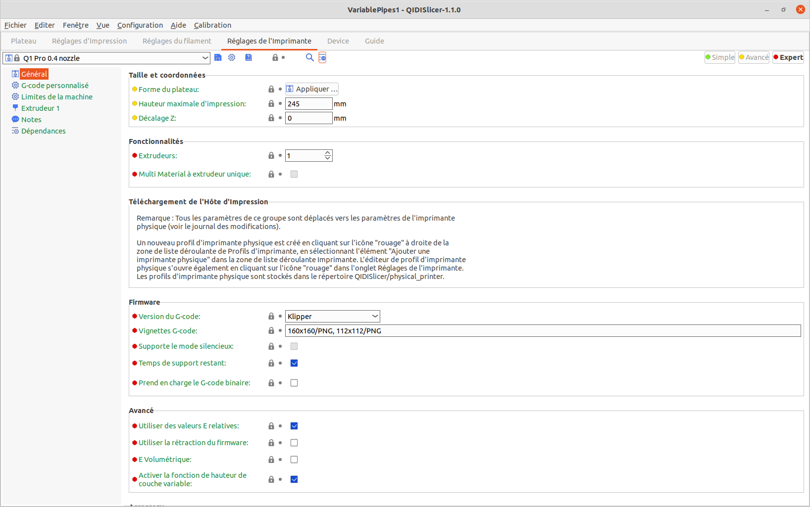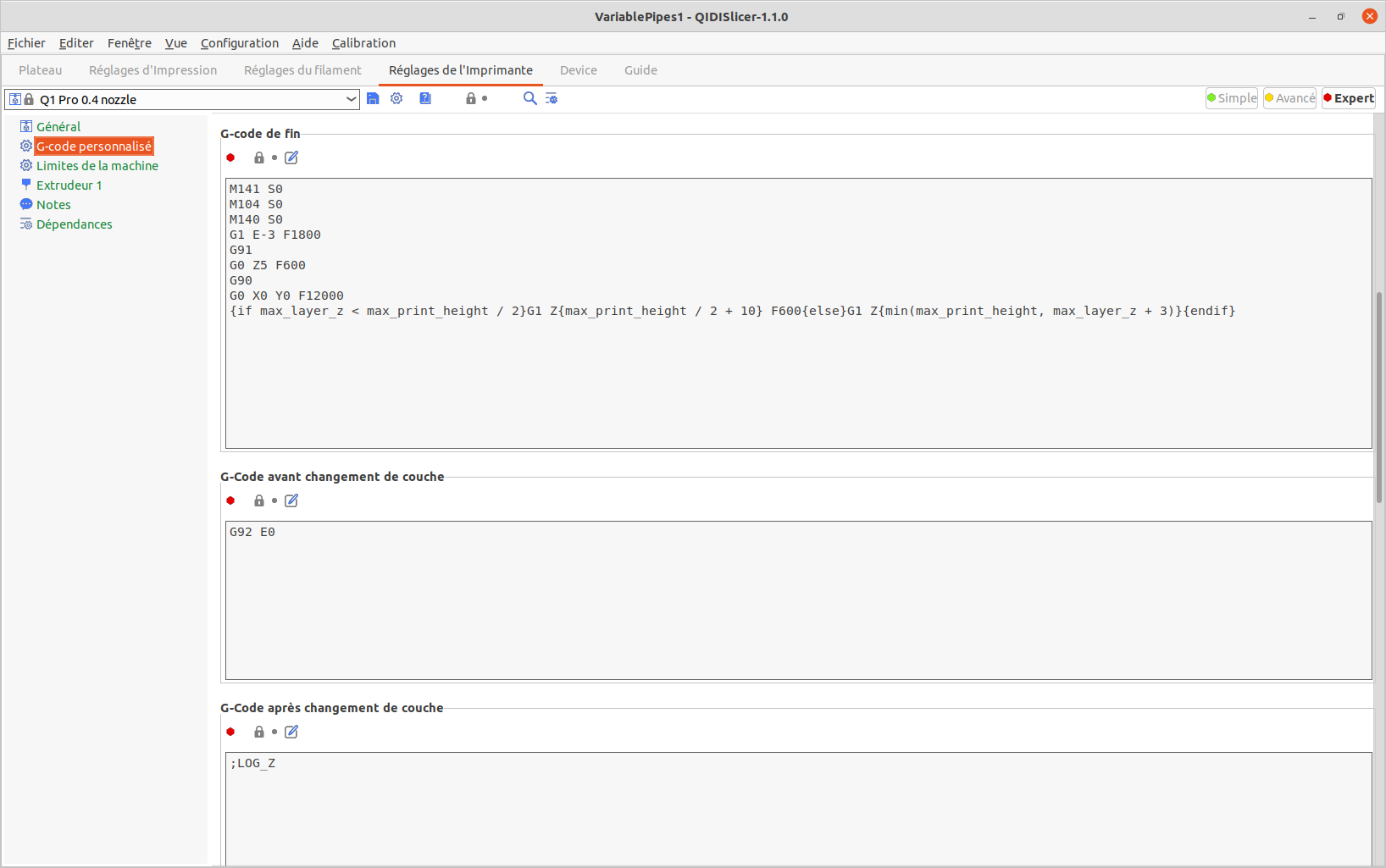 | Imprimante | Qidi Tech Q1 Pro |
