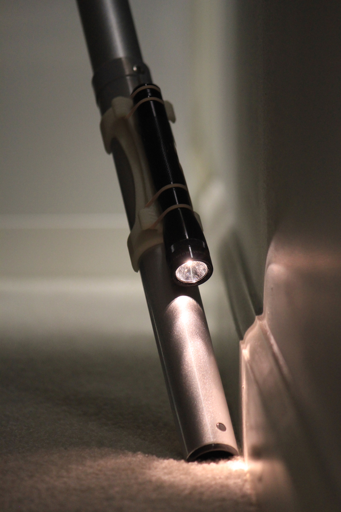 Le premier accessoire (ci-à-gauche) actuellement disponible est digne de MacGyver. Il permet en effet de fixer une petite lampe torche sur le tube de l’aspirateur. Cela peut être pratique pour nettoyer la poussière dans les coins sombres ou encore sous les meubles.