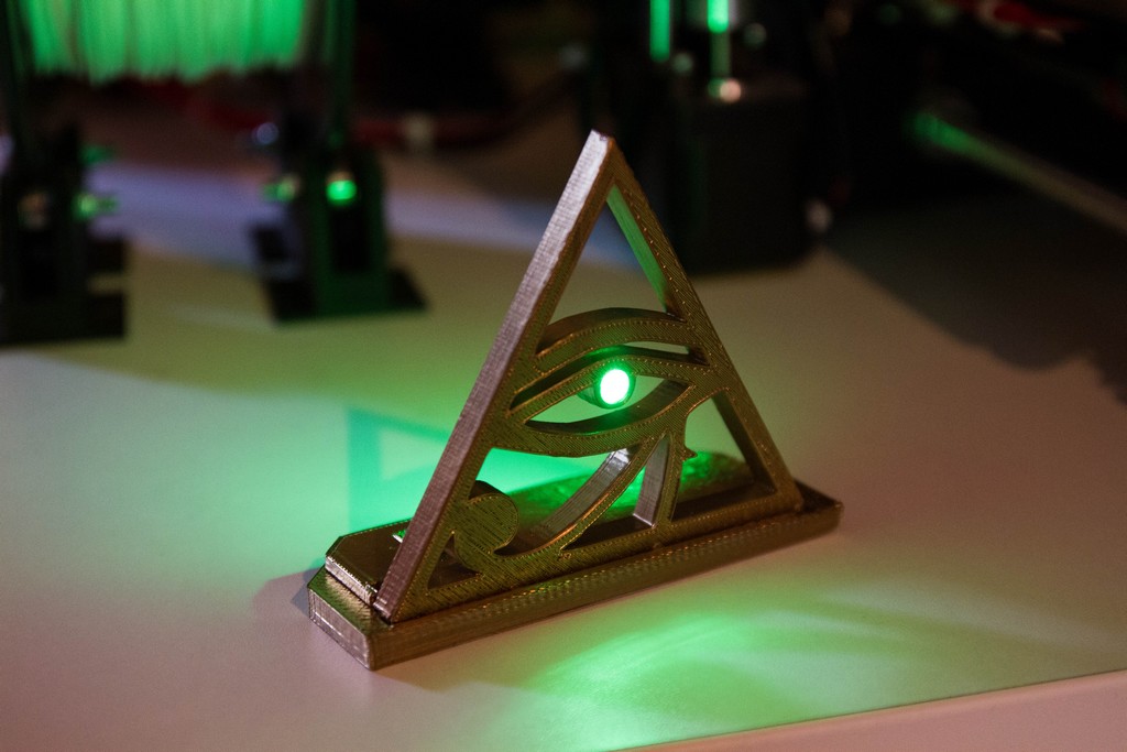 Voici une très bonne idée de cadeau pour les fans de l’Egypte : l’œil d’Horus imprimé en 3D avec une petite LED verte en guise d’iris créé et partagé gratuitement par Silverglade.