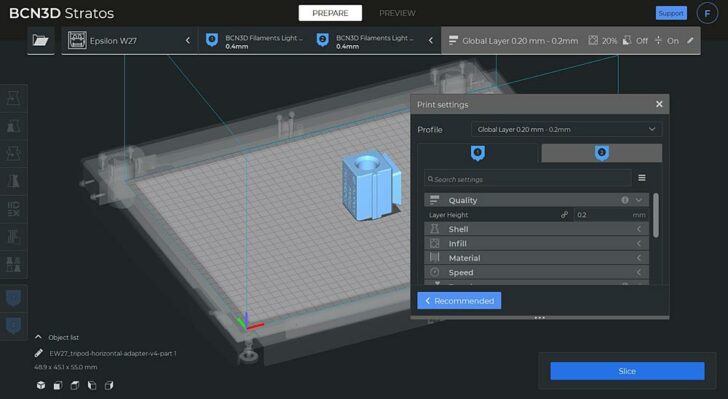 Nouveau logiciel slicer BCN3D Stratos