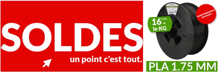 Du PLA à moins de 17€ le kilo ou des accessoires comme une pince coupe fil soldée à -37%, le spécialiste du consommable Filimprimante3D affiche de vraies belles promotions sur près de 150 produits !