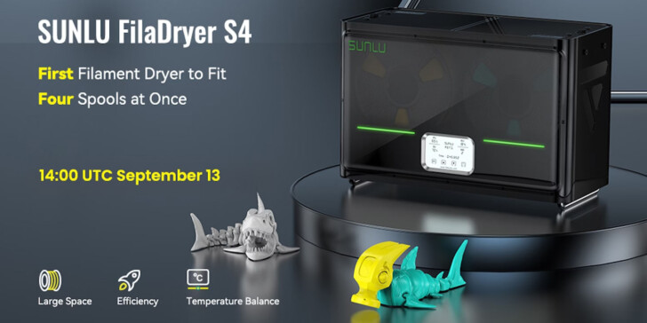 La nouvelle a été partagée sur le forum en début de semaine dernière et la campagne de financement participatif a débuté le 13 comme indiqué sur le site officiel du constructeur. Depuis, près de 4000 makers ont déjà précommandé un “séchoir” à filament Sunlu FilaDryer S4 sur Kickstarter. Ils ont très certainement été séduits par la capacité de 4 bobines d’1kg, la puissance de chauffe de 300W permettant une température maximale de 70° répartie de façon homogène grâce à 3 ventilateurs et le déclenchement automatique en fonction de l’humidité !