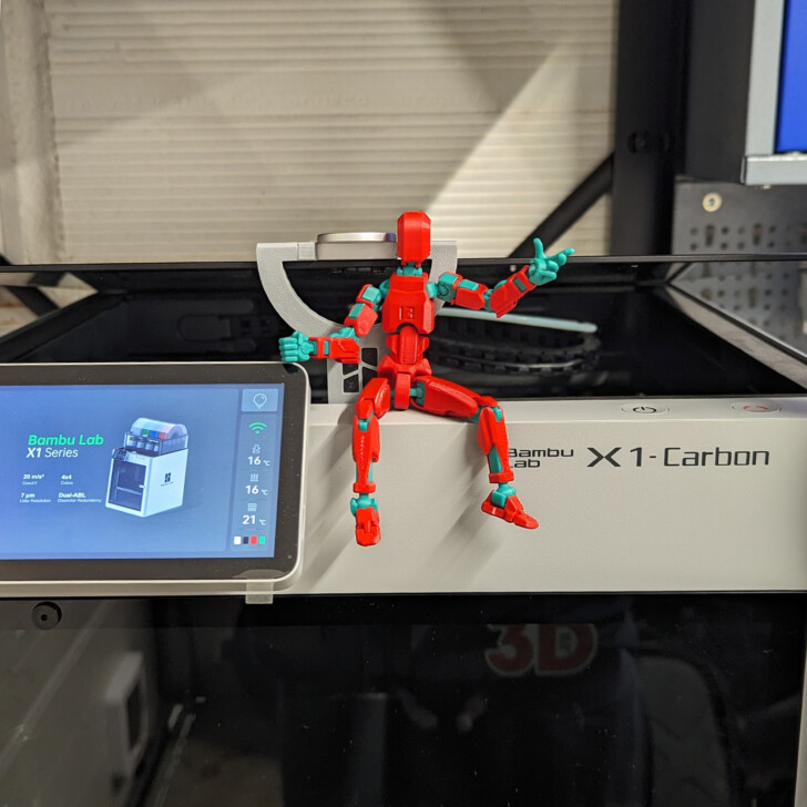 Le robot articulé Dummy 13 est actuellement très à la mode chez les makers. Ci dessous, en bleu, vous pouvez voir les versions de Jérôme qui finalise son test de la Bambu Lab A1 Combo. Ensuite, en rouge, il s’agit du modèle d’origine imprimé par Motard Geek sur la X1C. Pour finir, mesurant près de 40 centimètres, le modèle vert a été réalisé par Dom Wilk avec une mise à l’échelle de 300% sur une FLSun Super Racer.