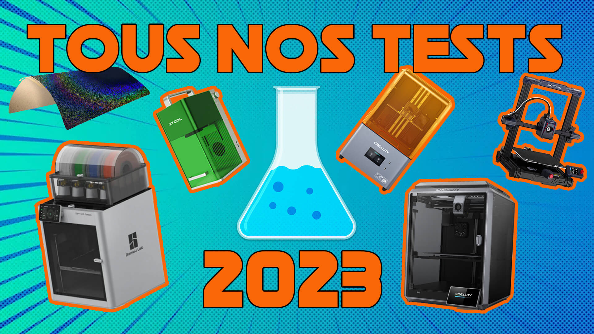 Une longue page recense tous nos tests publiés sur le site Lesimprimantes3D.fr en 2023. Plus de 50 revues de matériel avec évidemment des imprimantes 3D (FDM, SLA et DLP), mais aussi des outils multifonctions, des graveurs laser, des consommables et des accessoires. Le site est complété par notre chaine YouTube où nous publions aussi des retours d’expérience sur les produits que nous testons. Au total, nous avons déjà publié environ 150 tests en 10 ans d’existence et nous allons bien évidemment continuer sur cette lancée en 2024 ! 🙂