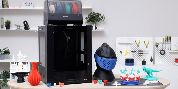 Phrozen y va aussi de son boitier AMS multi-couleurs mais celui-ci est déjà annoncé depuis plusieurs mois et déjà aperçu dans certains salons (Formnext 2023, par exemple). Il est associé à l’imprimante 3D Phrozen Arco dont la campagne de financement participatif sur Kickstarter vient tout juste de prendre fin, engageant plus de 1 300 000 € grâce à plus de 1 400 “backers” enthousiastes. On en parle aussi sur le forum.