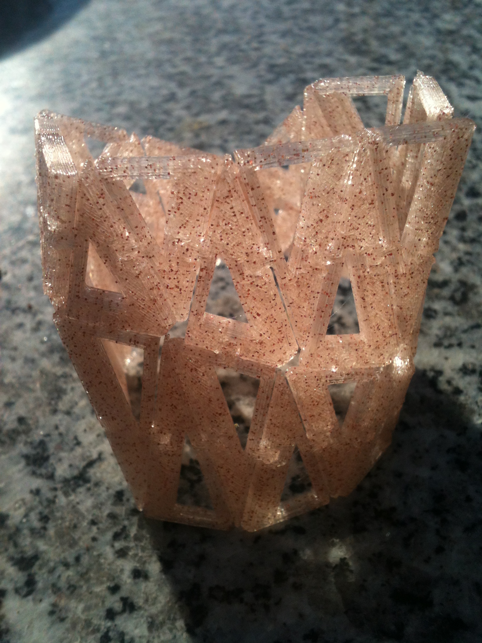 Pour la communauté delirium07 nous fait un retour d’utilisation sur le filament pailleté d’Ariane Plast. Ce filament n’est pas fait pour les hautes résolutions puisque plus les couches sont épaisses plus l’effet paillettes est grand. L’exemple ci-dessous a été imprimé à 300 microns avec une température de buse à 230° et un plateau chauffant à 70°.