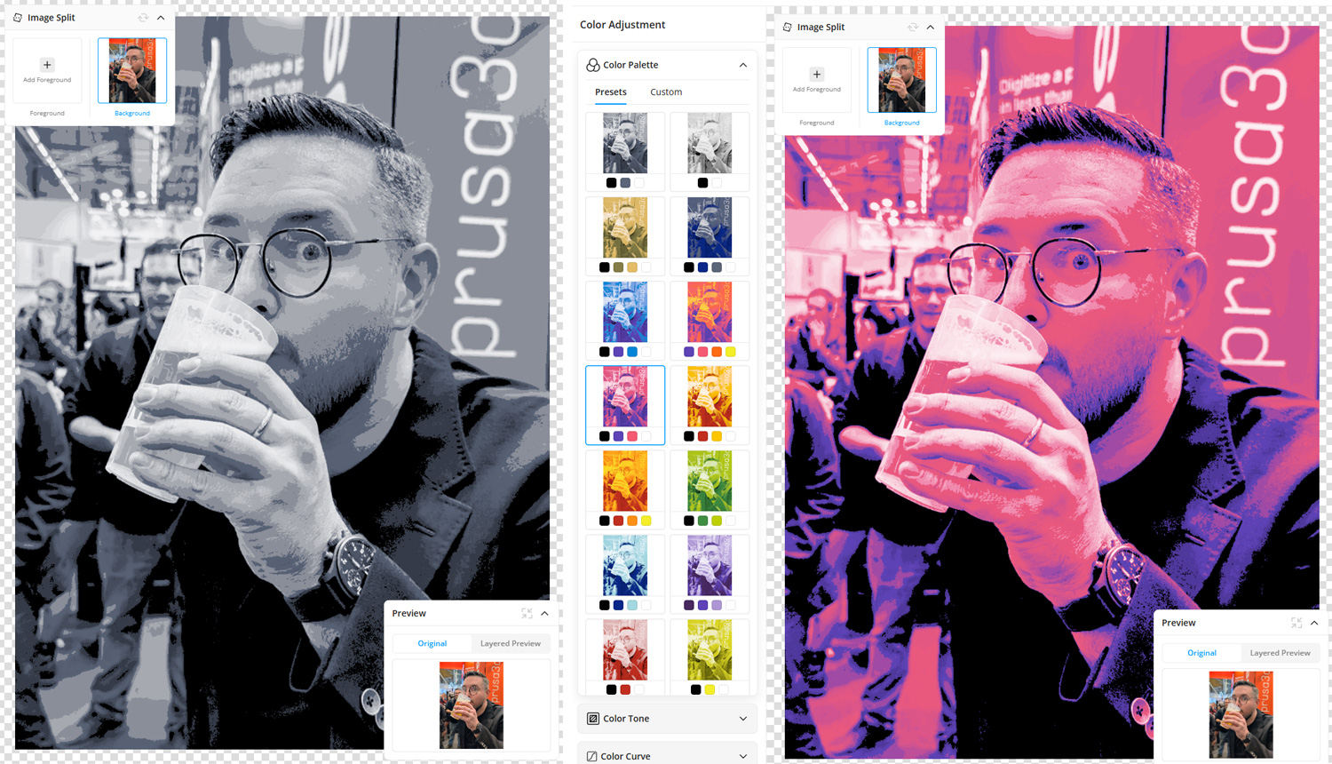Encore une nouvelle fonctionnalité pour MakerLab, le service en ligne de génération de modèles 3D de Bambu Lab. Avec Chroma Canvas, transformez cette fois-ci vos photos en HueForge pour les imprimer en 3D et donner un tout autre aperçu de vos photos de famille, animaux domestiques et autres souvenirs de vacances. La génération est rapide, la personnalisation des couleurs facile à modifier avec les filtres, il n’y a ensuite plus qu’à imprimer avec le système multi-couleurs d’une imprimante 3D filament compatible. Essayez Chroma Canvas depuis cette page, qui nécessite simplement un compte gratuit MakerWorld.