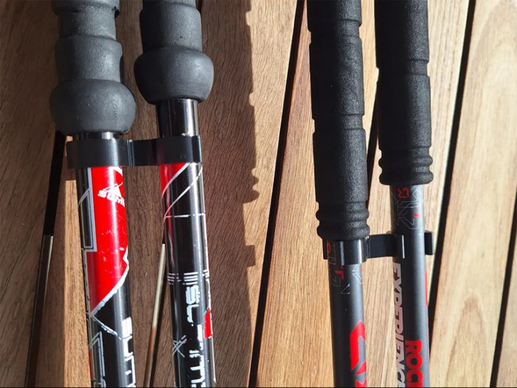 Les bâtons pour activité sportive s’utilisent toute l’année : raquettes, ski de piste et de fond en hiver, randonnée, marche nordique et trail en été. Mais ils sont en général rangés l’un à côté de l’autre, l’un sur l’autre, n’importe comment et ils finissent par tomber. C’est donc le moment d’imprimer des clips pour mettre un peu d’ordre dans tout ça, ici avec les modèles 3D partagés par jcjames_13009 sur le forum.