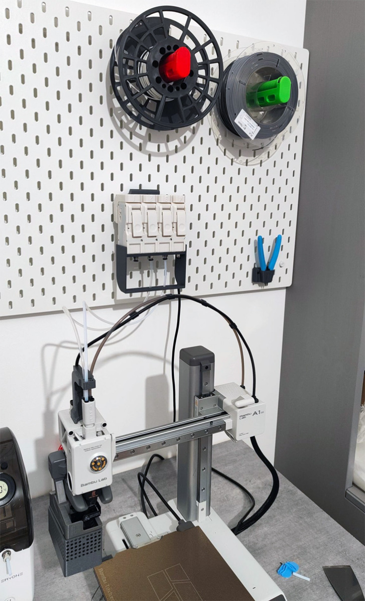 Sur le forum, aifol nous partage son expérience avec le BMCU 370C, un équivalent AMS open source vendu à environ 75 € ou un peu plus cher en kit. Il a ainsi pu utiliser un “AMS Lite DIY et open source” sur sa Bambu Lab A1 mini, sans le support donc bricolé sur un panneau Ikea Skadis.