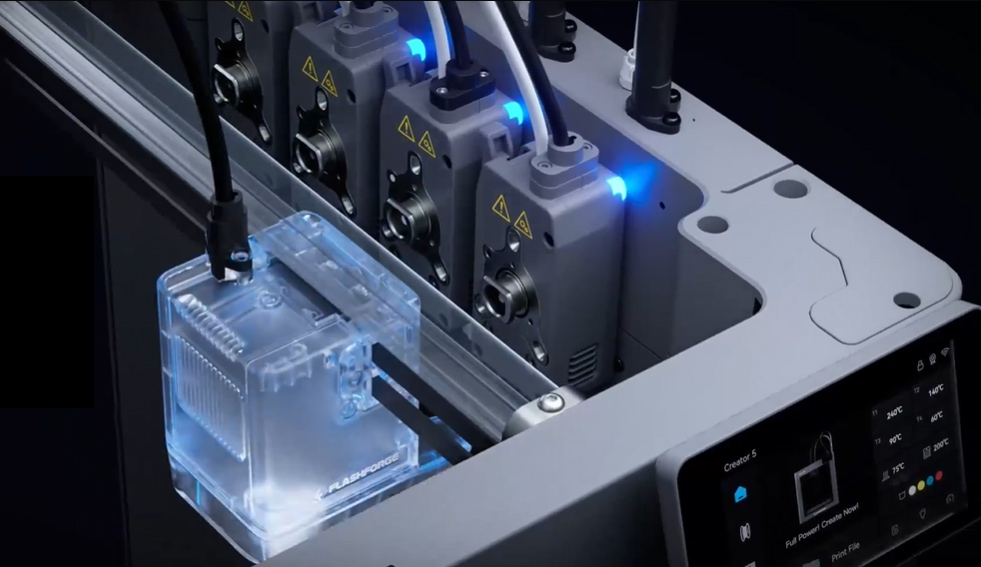 FlashForge suit la mode du “toolchanger” pour proposer une imprimante 3D filament capable de multi-couleurs et multi-matériaux sans déchets de purge, la Flashforge Creator 5. Son FlashSwap imite la Snapmaker U1 dans un format équivalent (256 x 256 x 256 mm) et châssis ouvert. L’équivalent fermé et chauffé sera Flashforge Creator 5 Pro, qui n’est pas encore dévoilée. La C5 s’achète déjà pour 649 $ en Early bird.