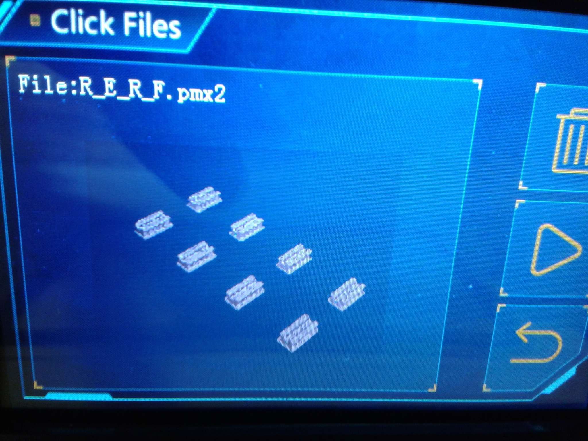 Pour trouver les durées d’exposition adaptées à cette résine sur mon imprimante, j’ai pris le temps de créer un fichier R_E_R_F (“Resin Exposure Range Finder”). Cela permet d’imprimer huit fois le même modèle mais avec une durée différente d’exposition selon leur position sur le plateau.