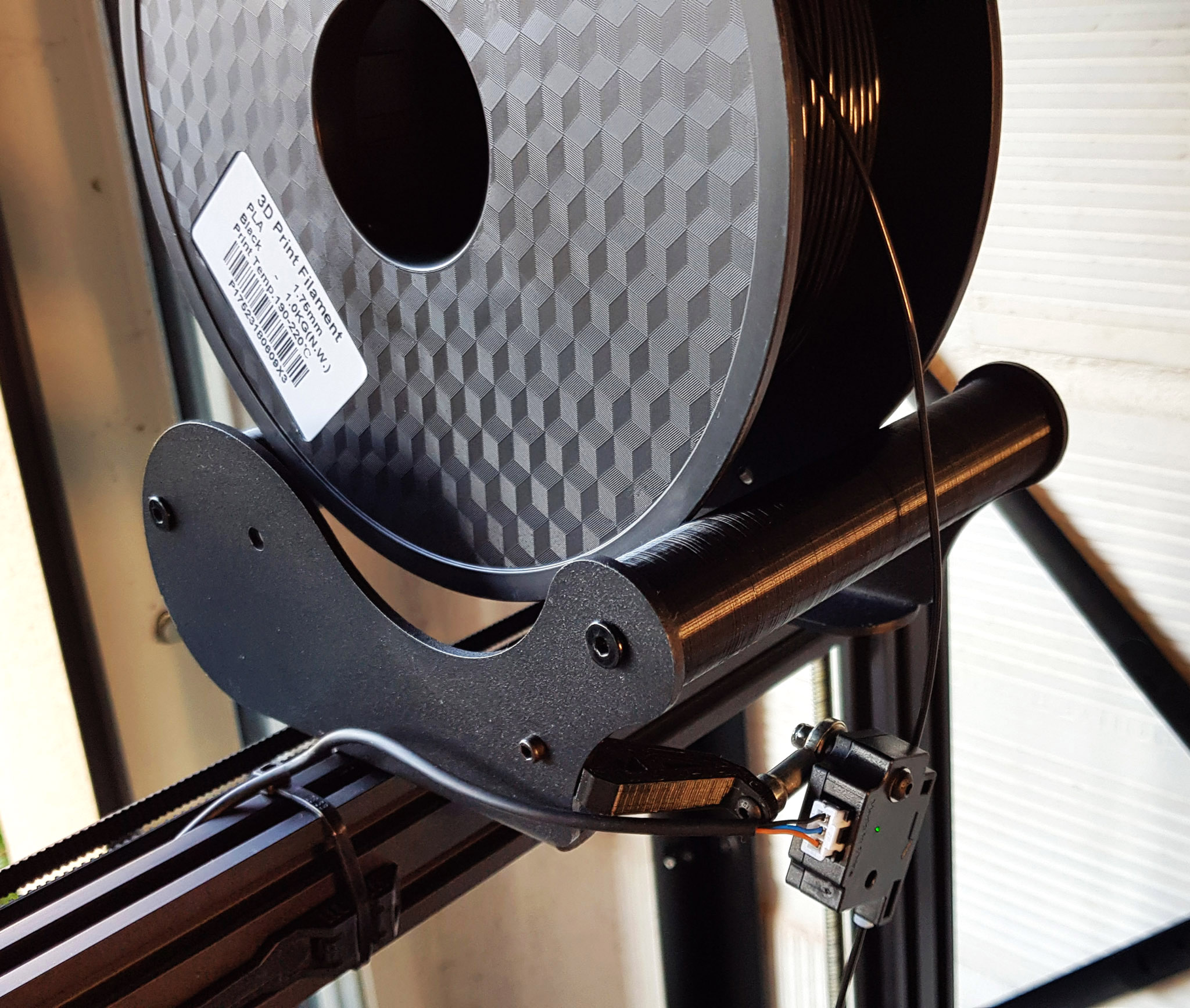 Avec ce nouveau support de bobine, il a fallu que je déporte le capteur de filament avec cet accessoire.