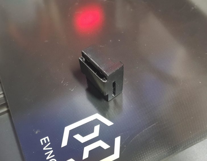 Pour la sécurité de l’alimentation du lit chauffant, j’ai tout d’abord imprimé ce petit support pour mieux maintenir les fils.