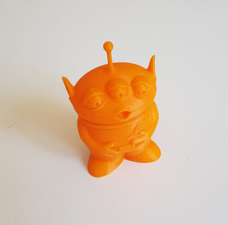 De la première couche bien propre jusqu’aux petits détails (oreilles et antenne) sur la tête de l’Alien, cette impression réalisée sans support est de qualité très correcte, même pour les parties dans le vide.