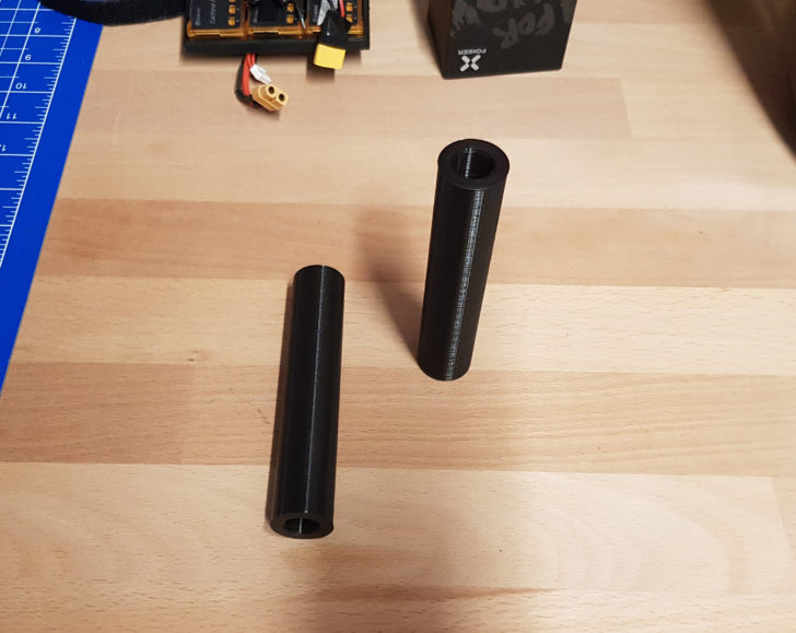 Pour plus de confort, j’ai ensuite imprimé ces deux rouleaux pour le support de bobine. L’objectif est de ne plus avoir à régler l’écart du support en fonction de la largeur de la bobine utilisée. Cela me permet de poser n’importe quelle bobine dessus, celles-ci tournent toujours aussi bien grâce aux roulements à billes conservés.