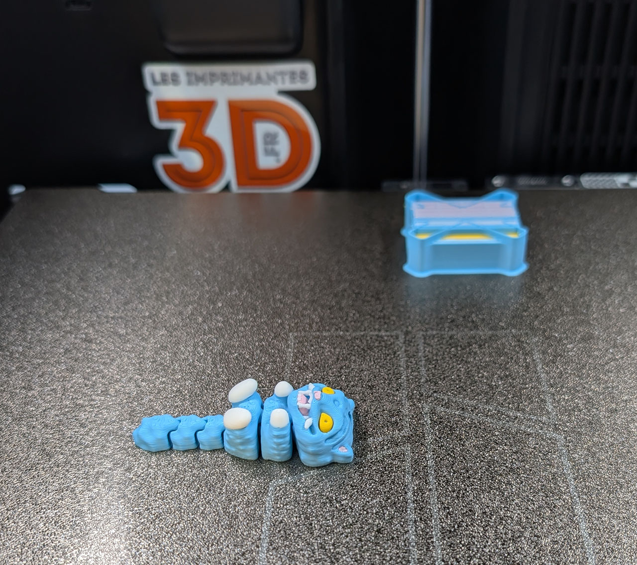 D’un point de vue qualité c’est excellent. Les couches sont quasiment invisibles (je n’ai pas réussi à récupérer le G-code pour analyser les réglages mais c’est probablement inférieur à 200 microns) et la partie colorée navigue sans problème de haut en bas lorsqu’on retourne le jouet.
