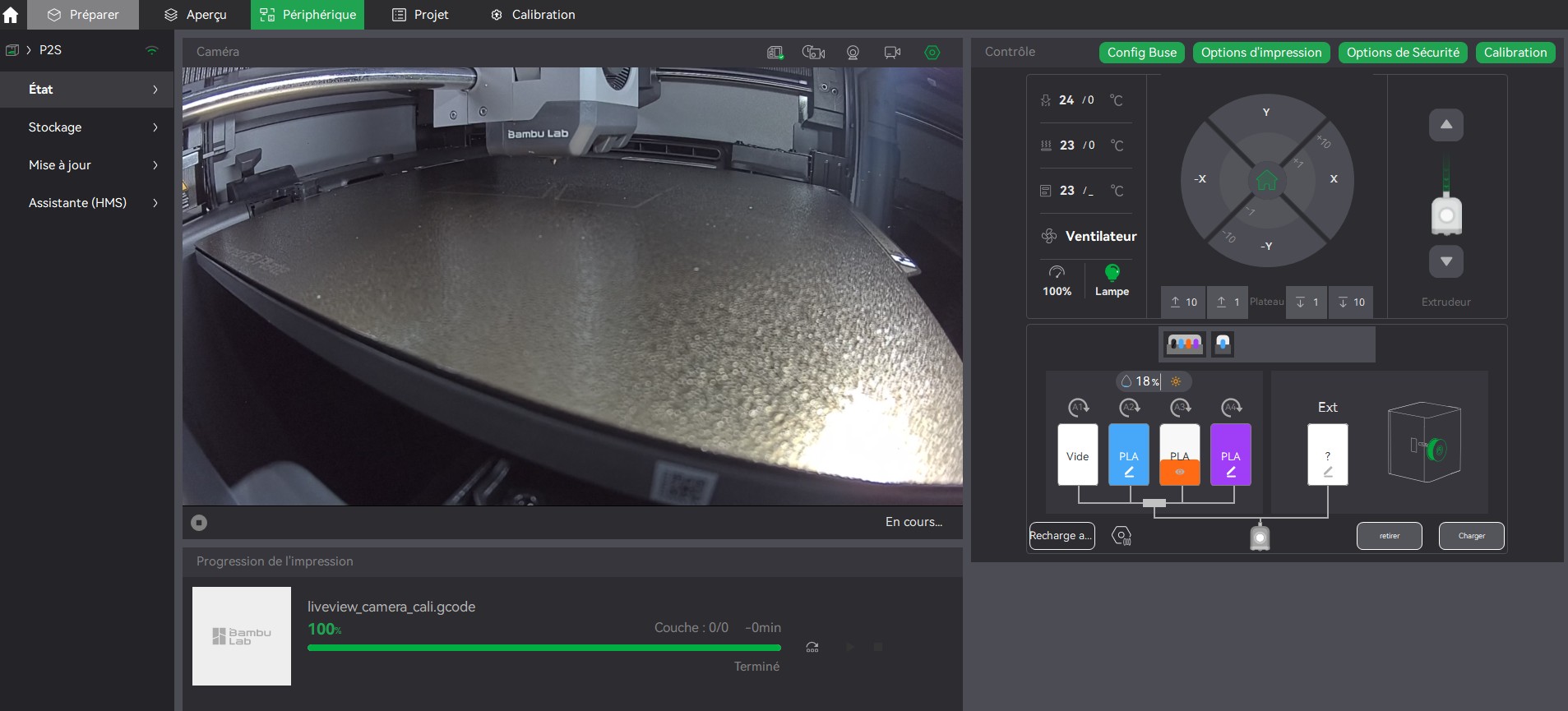 Il est possible qu’à ce moment là, la P2S vous propose de faire une mise à jour des firmwares (P2S, AMS et buffer), il est préférable de le faire maintenant pour profiter des derniers updates et corrections de bugs.