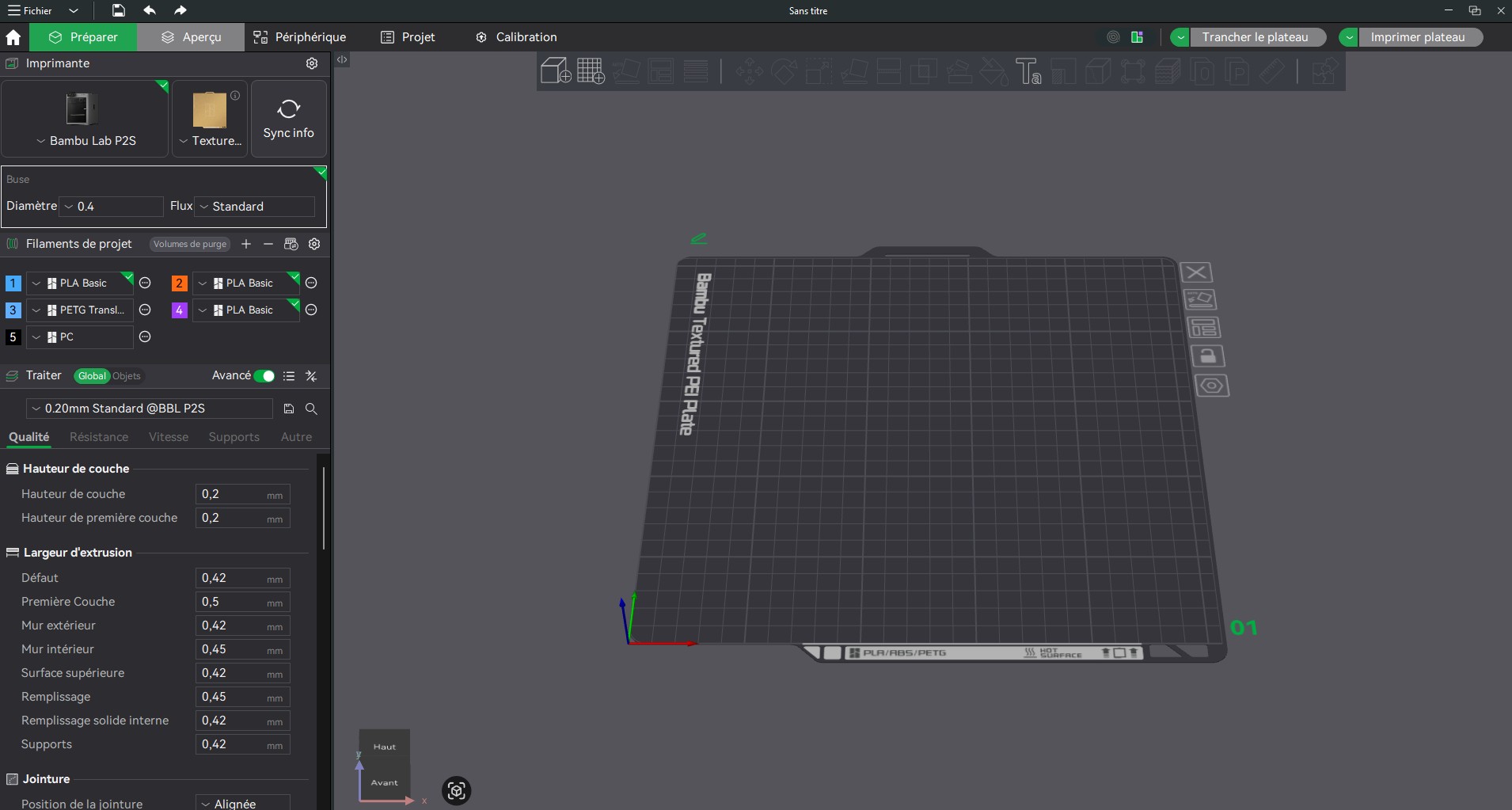 C’est le logiciel développé qui permet le tranchage des pièces avant impression. A l’heure ou j’écris ce test, Bambu Studio est actuellement le seul slicer qui propose un profil pour la P2S, Orca Slicer ne l’a pour l’instant pas intégrée, pas plus que pour les machines de la série H2 d’ailleurs.