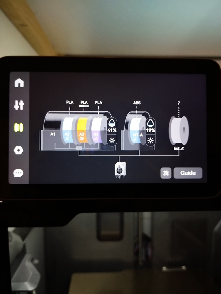 On remarquera aussi, par rapport à l’AMS première génération, que l’envoi de filament vers la tête de l’imprimante et le rembobinage est nettement plus rapide. On ne gagne pas beaucoup de temps à chaque changement mais ça doit se sentir lorsqu’il y a de nombreux changements de filaments.