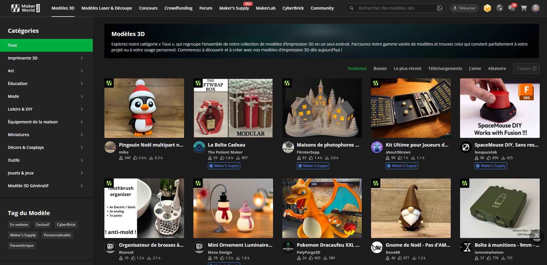 Enfin, MakerWorld est la bibliothèque en ligne de Bambu Lab avec actuellement la plus grosse base de modèles 3D. De nombreuses marques ont elles aussi créé leur propre bibliothèque mais sans arriver au niveau de MakerWorld. De nombreuses rubriques sont disponibles pour sélectionner un modèle, l’ouvrir dans Bambu Studio ou Bambu Handy et l’envoyer directement à l’impression. Je recommande quand même de vérifier les réglages proposés, certains profils peuvent comporter des erreurs ou sont complètement farfelus. Les commentaires peuvent aussi aider à imprimer au mieux.