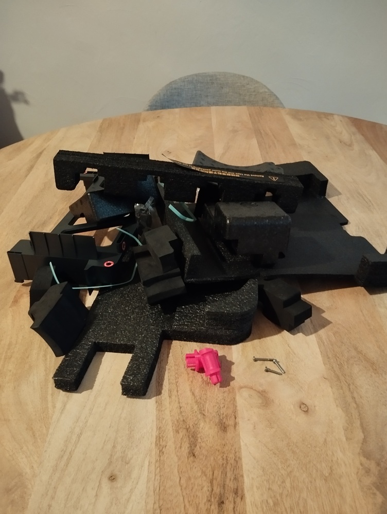 J’ai également été interpelé par le nombre de morceaux de mousse de protection à l’intérieur de la machine, il y en a partout. D’accord, il y a l’AMS 2 Pro mais tout est bien calé, rien ne bouge et tout est à sa place. J’imagine le casse tête si un jour je voulais remettre tout ça dans le carton.