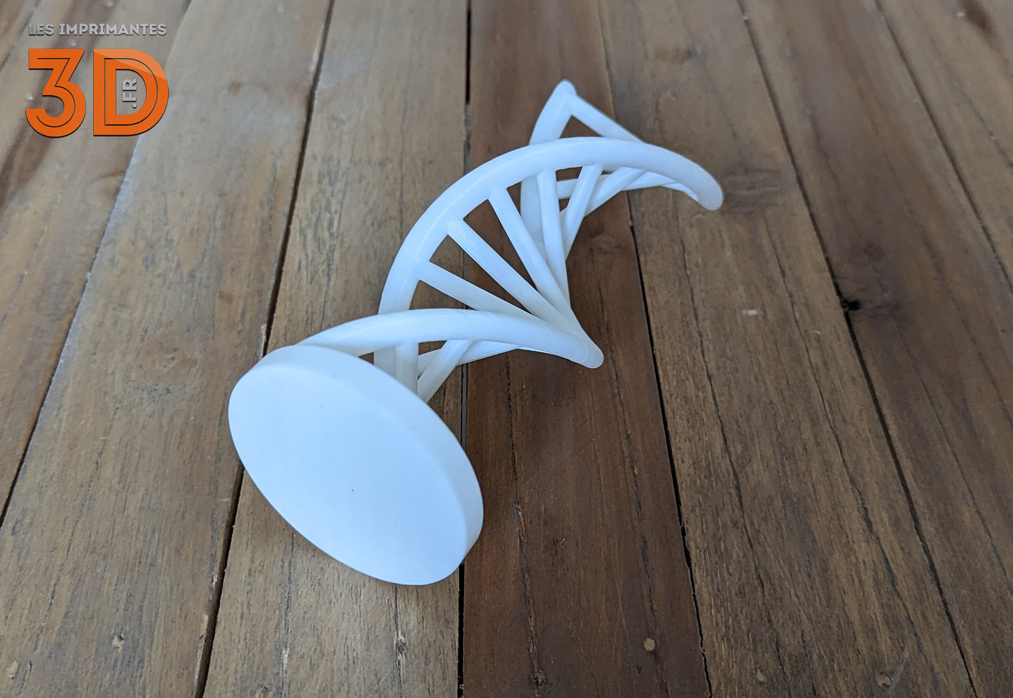 J’ai enchaîné avec cette double helix dont la seconde moitié a été faite en mode sport et affiche là aussi plus de défauts après 1h18 d’impression :