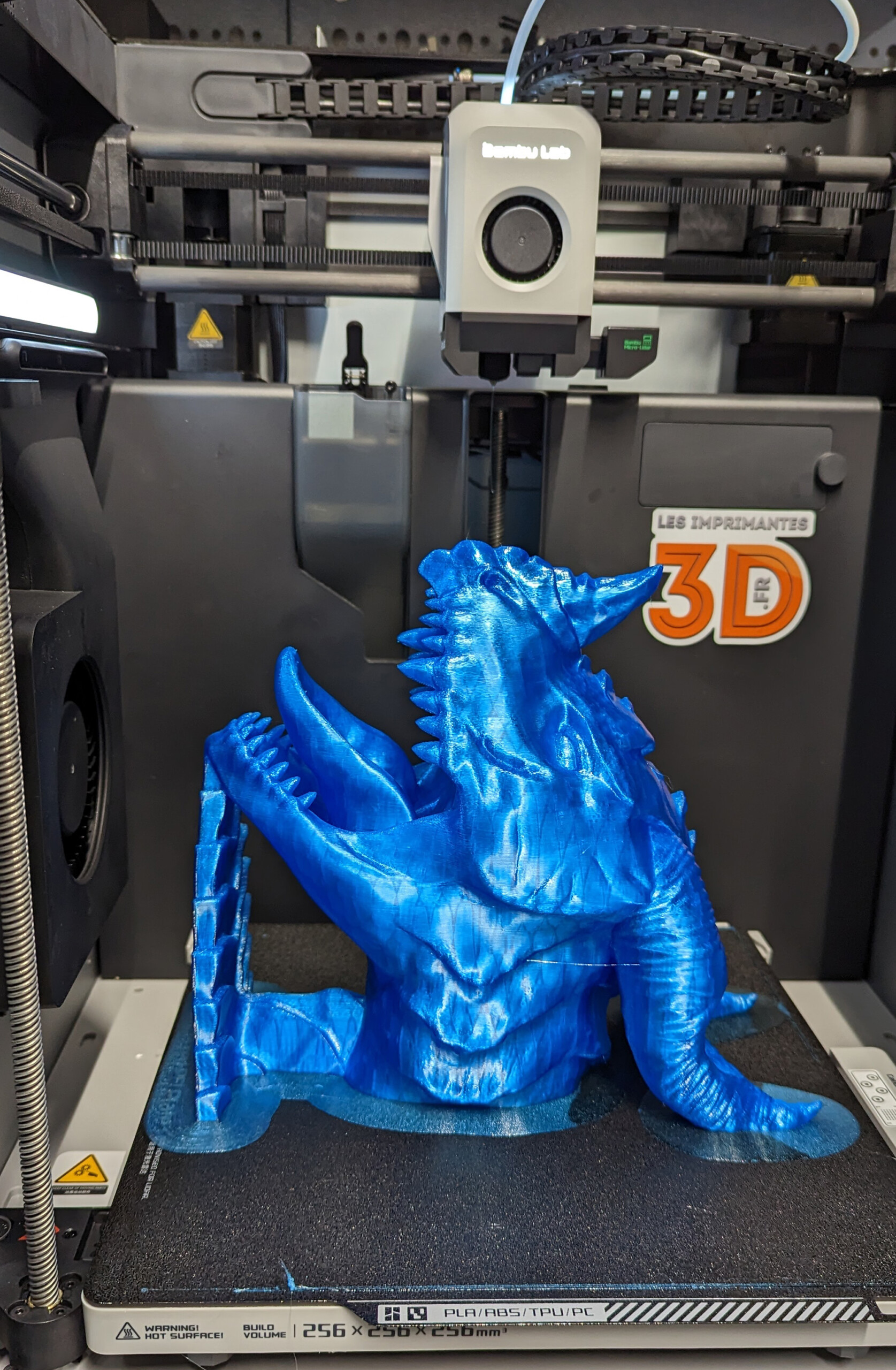 Ci-dessous je vous ai fait un petit montage de cette première impression avec la calibration du flow et l’inspection de la première couche grâce au Lidar en vitesse réelle et l’impression complète en timelapse. C’est bien là l’avantage d’avoir une caméra (de bonne qualité, contrairement à celle en option sur la P1P) qui permet à la fois de filmer toute l’impression en vitesse réelle tout en faisant un timelapse en même temps.