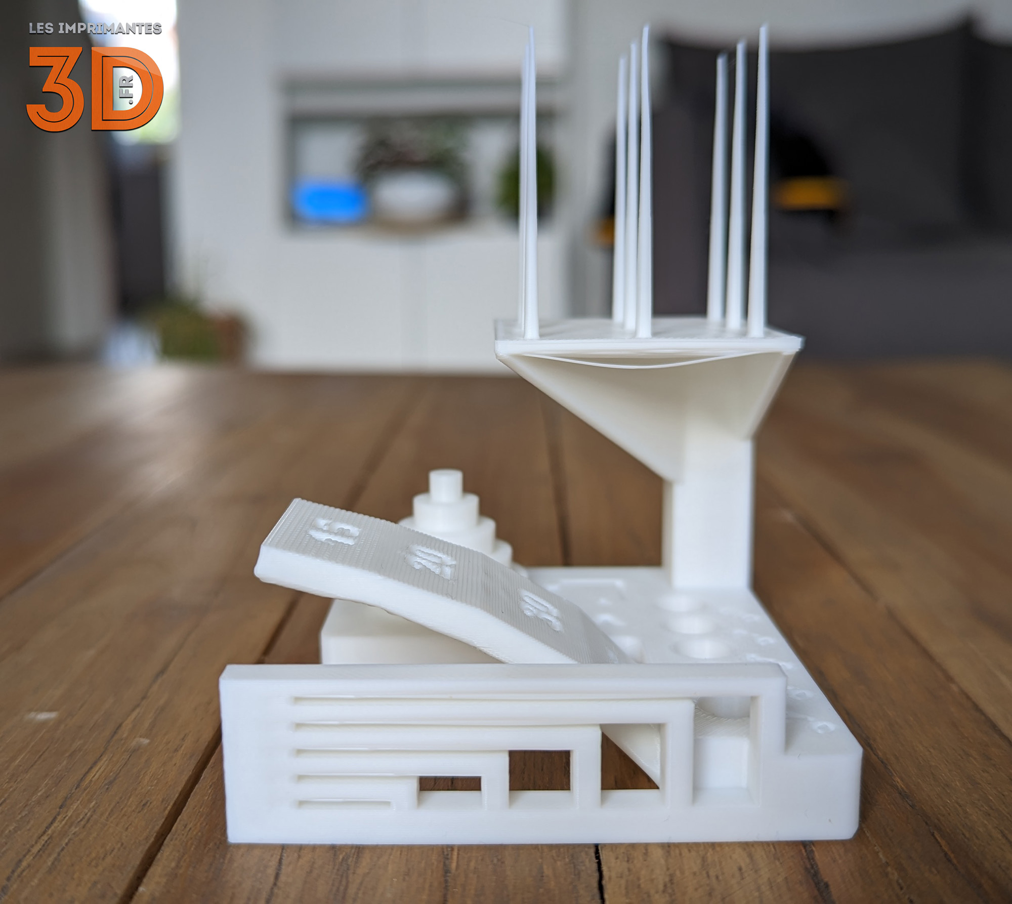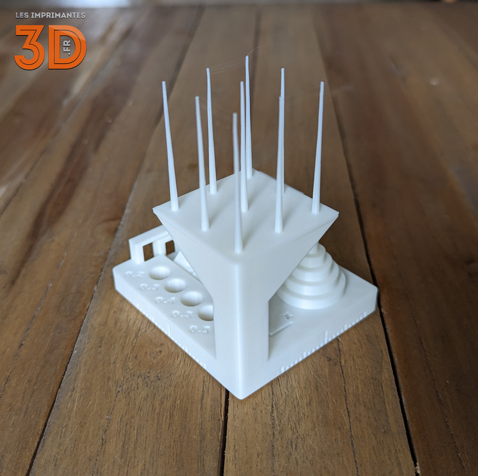 Les surplombs sont légèrement moins bons sur la seconde partie imprimée plus vite mais ça reste acceptable. Les pontages sont quant à eux de très bonne qualité quelque soit la vitesse.
