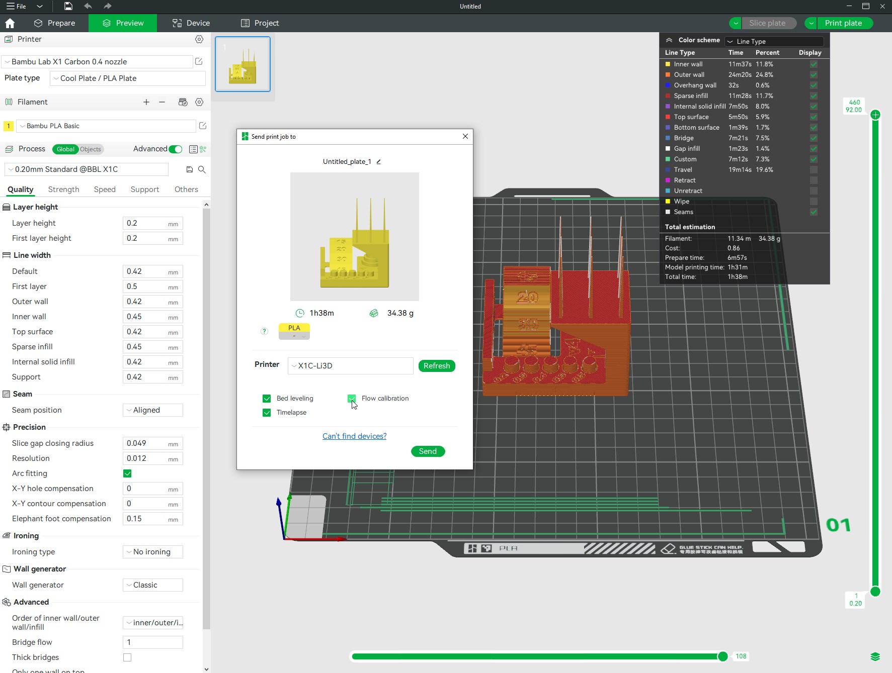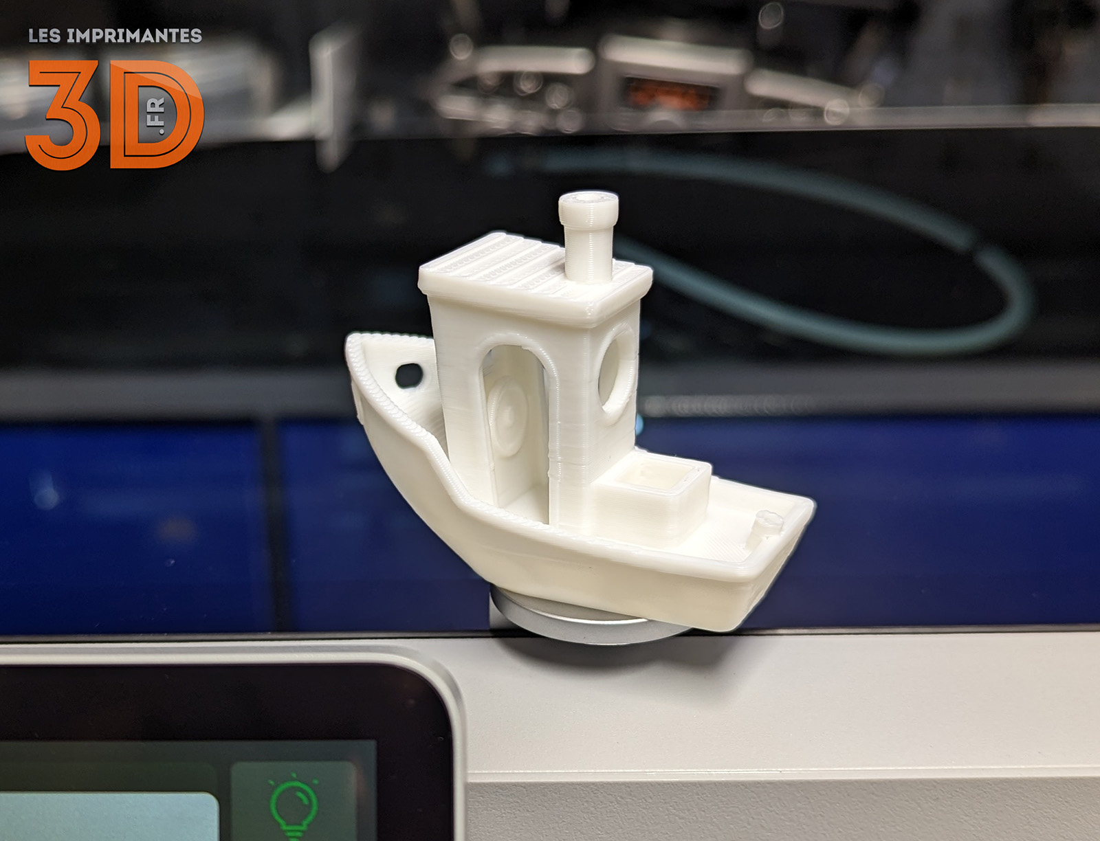 Sur la mémoire interne de la X1C on retrouve les mêmes gCodes que sur la P1P. Pour changer un peu, je me suis contenté du Benchy annoncé en 24 minutes sur l’écran de contrôle :