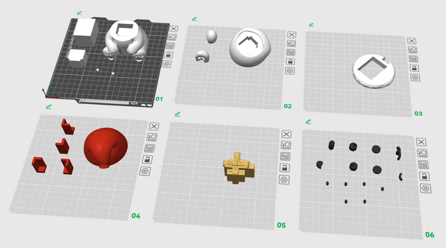 En premier lieu, on fait comme d’habitude : on télécharge un 3MF / STL depuis une bibliothèque en ligne ou on modélise soi-même. On importe ça dans le slicer, par exemple Bambu Studio pour l’A1 mini, et on prépare les modèles à l’impression (couleur, paramètres…). La gestion des plateaux est importante puisque l’on va définir quels objets seront imprimés sur la même plaque pour regrouper par couleur, matière et diviser par taille. L’ordre des plateaux importe peu car nous pourrons le modifier plus tard avec l’outil de Chitu.