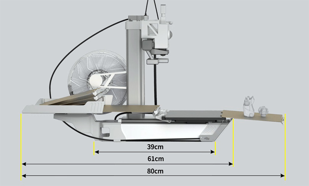 Cela n’empêchera pas les plaques de se retrouver les unes au-dessus des autres. Il faudra donc éviter d’imprimer des objets trop fragiles, à moins de mettre en place un convoyeur / tapis roulant devant la A1 mini pour déplacer les plateaux qui tombent de l’imprimante. En sachant qu’il faudra aussi gérer leur stockage une fois déplacés.