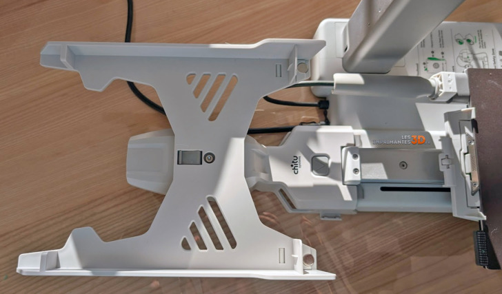 Un bon “cable management” est aussi recommandé puisque la tête d’impression pourrait accrocher le levier de l’axe Z et la pièce de plastique Chitu qui empêche le gondolement du câble d’origine du plateau peut sortir de son ergot et ainsi perturber le dépôt des plateaux sur le lit chauffant.