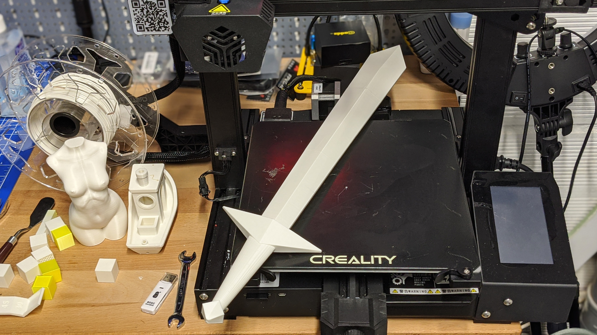 En bonus, à la demande de mon fils, j’ai imprimé cette épée dont la lame était en trois parties :