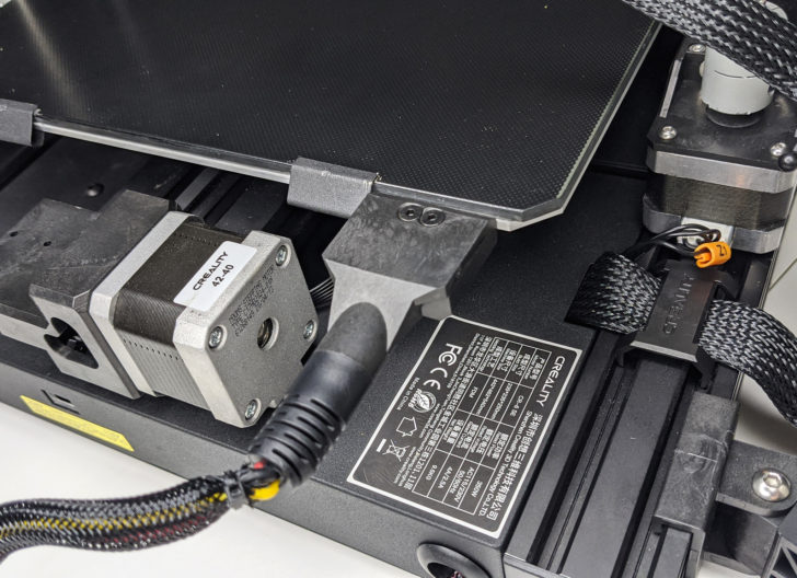 Le plateau est chauffant, avec des câbles d’alimentation sécurisés. Il est également amovible, avec un mécanisme plutôt pratique. Cependant, le retrait des objets nécessite parfois l’usage de la spatule. Bien qu’à froid les objets aient généralement tendance à “sauter” du plateau, ma préférence va aux plateaux magnétiques et flexibles de type Ziflex ou PEI. C’est une modification qu’il est d’ailleurs tout à fait envisageable de faire sur cette CR-6.