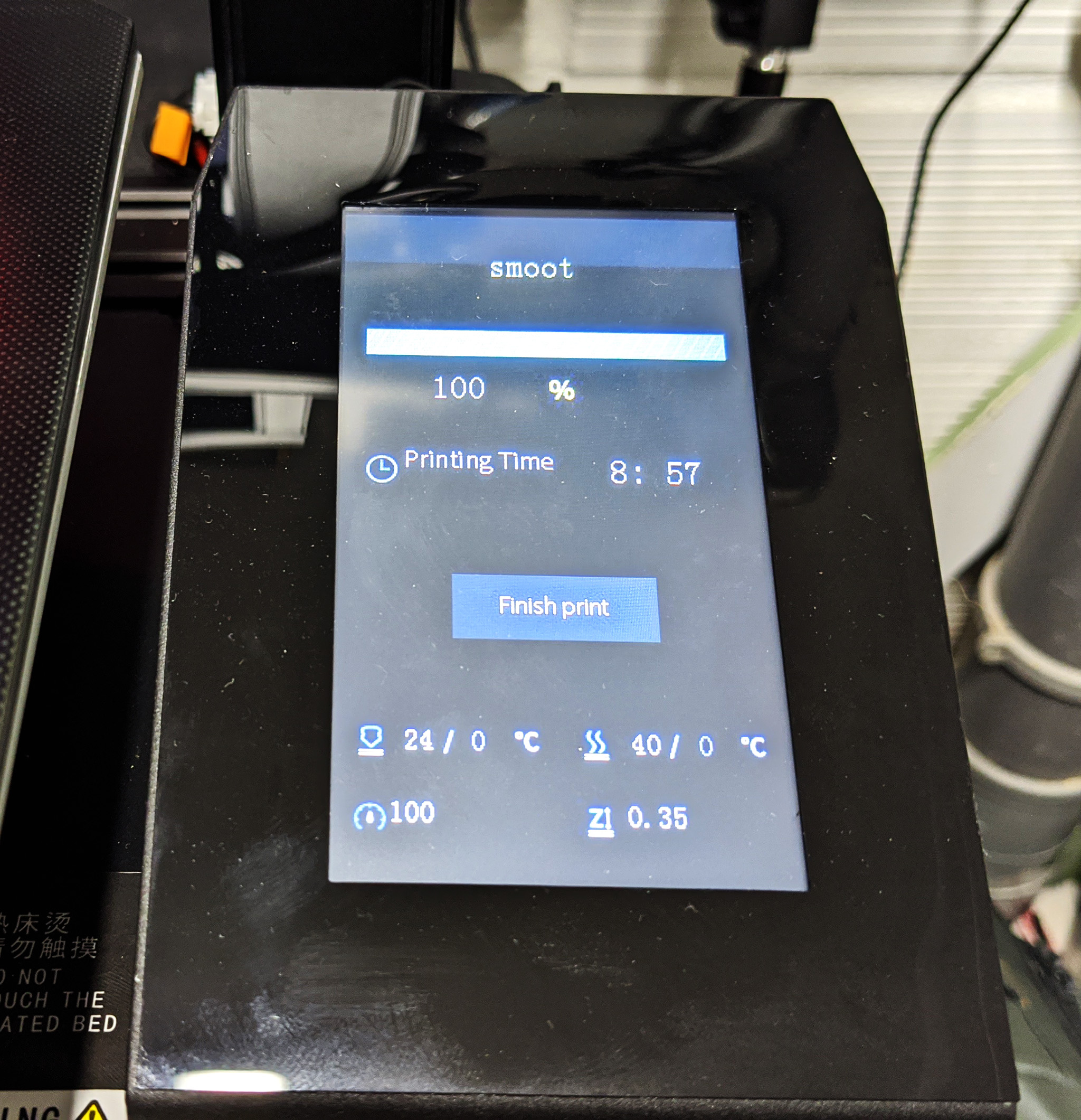 J’ai ensuite lancé l’impression du fichier smooth.gcode sans trop savoir de quoi il s’agissait…