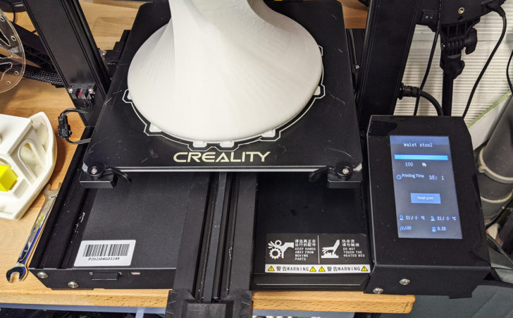 Du coup, j’ai repris les impressions de la carte avec un très gros print qui a duré 35 heures. Il s’agit d’un tabouret qui exploite tout le volume d’impression de la machine :