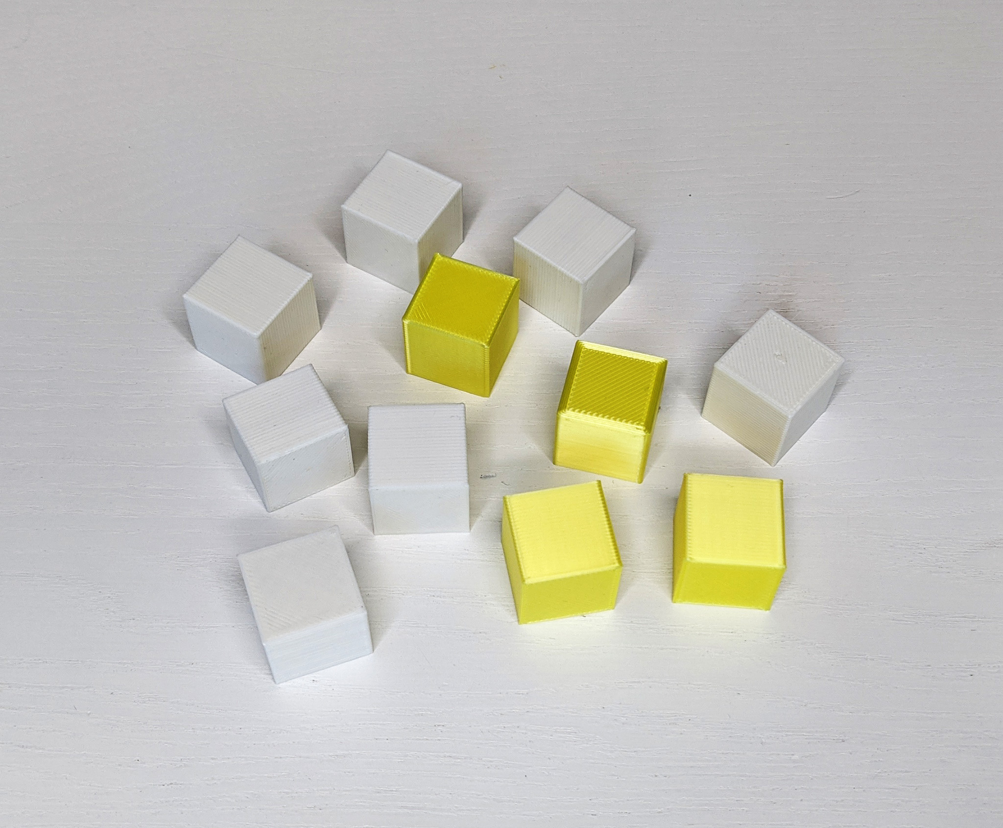J’ai donc imprimé tout un tas de petits cubes avec différents paramètres (vitesse de 40 à 100mm/s, flow de 90 à 100%, etc.) depuis Simplify3D et Cura. Ils n’étaient donc pas sur la carte SD, c’était pour diagnostiquer.