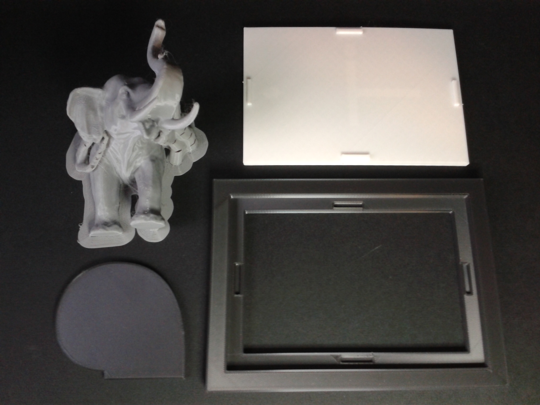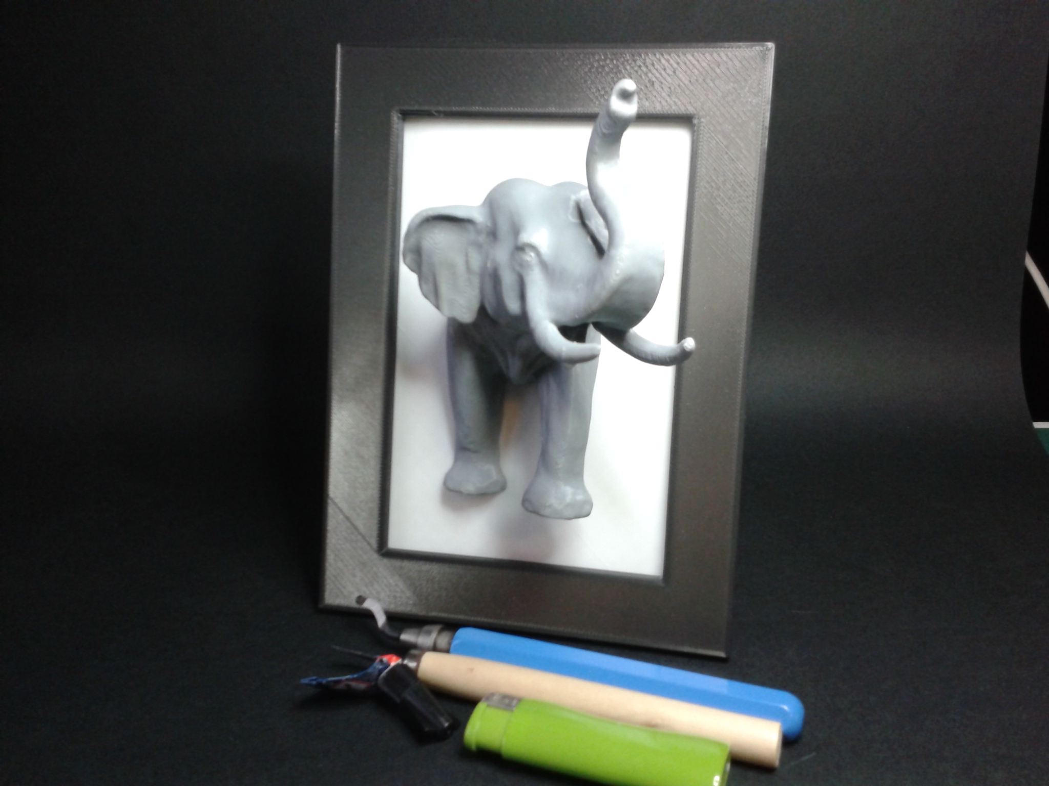Un cadre de bureau avec un éléphant. Quatre impressions pour les éléments a assembler ou à coller, en suivant à peu près les recommandations du créateur.