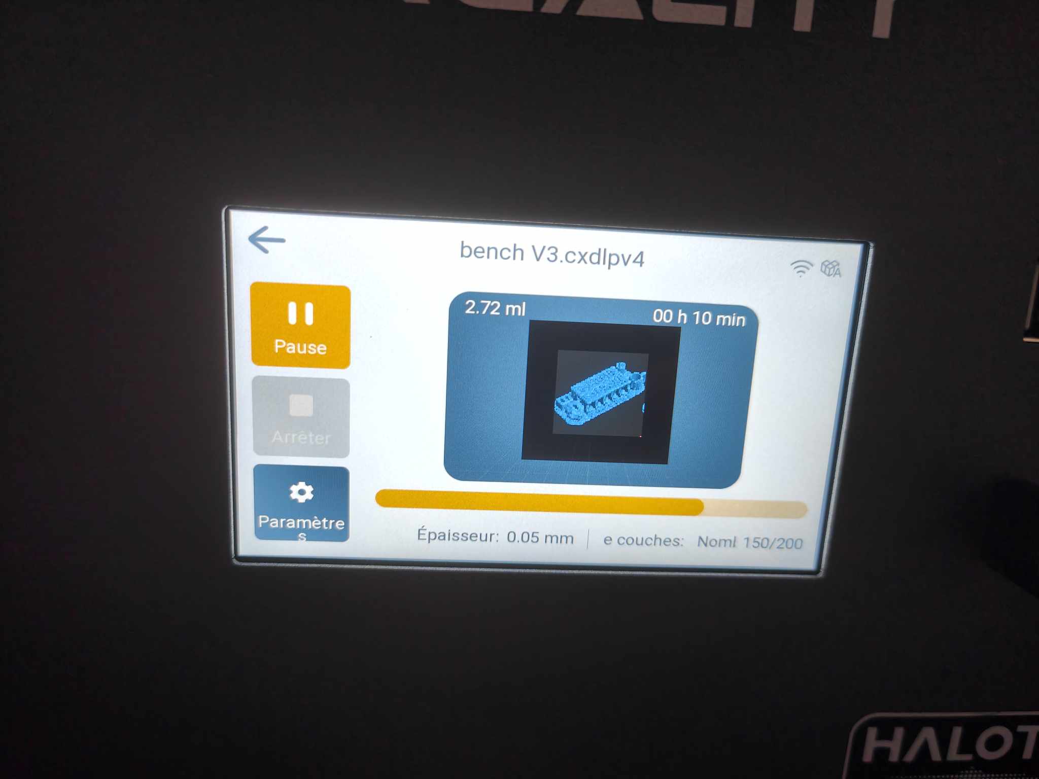 Utiliser la connexion sans-fil demandera de passer par le slicer maison de chez Creality : Halot-Box. Depuis ce dernier, on pourra même modifier les paramètres en cours d’impression, suivre le temps d’impression restant et télécharger les vidéos timelapse. On peut également faire tout ça depuis l’application mobile.