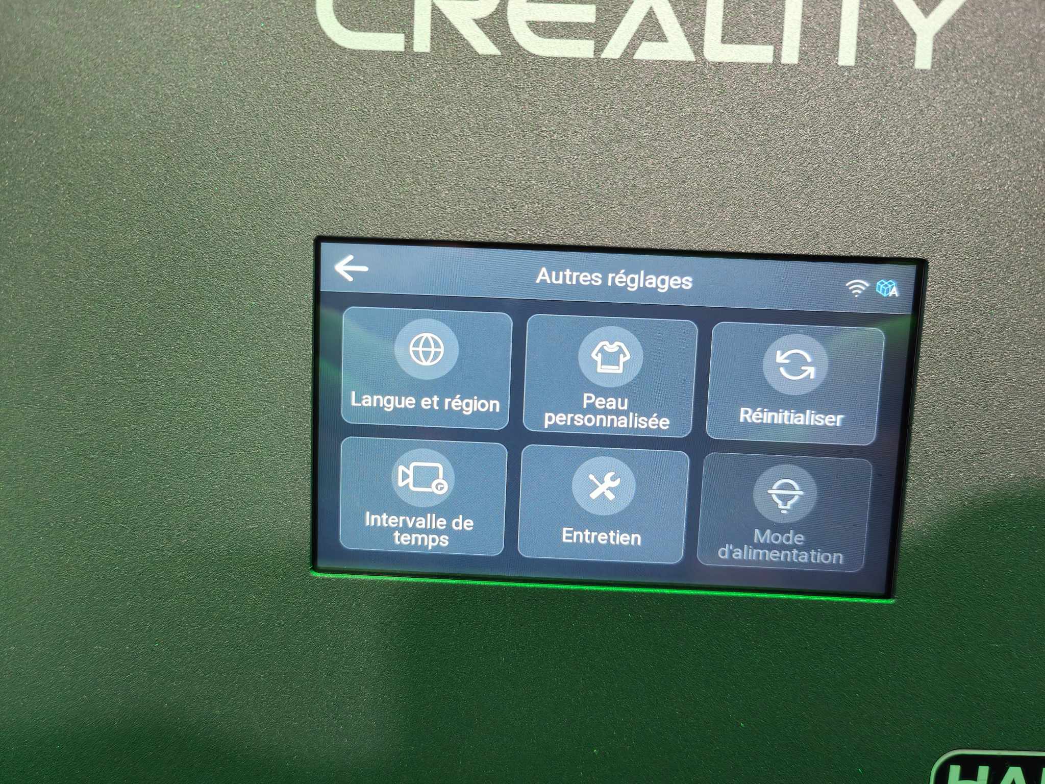 Voilà le point le plus clivant pour moi sur cette machine. Les imprimantes résine haut de gamme de chez Creality ont une interface particulièrement déroutante et particulièrement différente des concurrents. Elle offre de nombreuses options peu nécessaires qui peuvent facilement perturber le néophyte ou l’habitué à des machines d’autres marques.